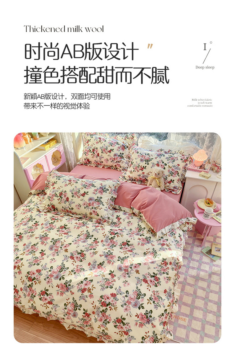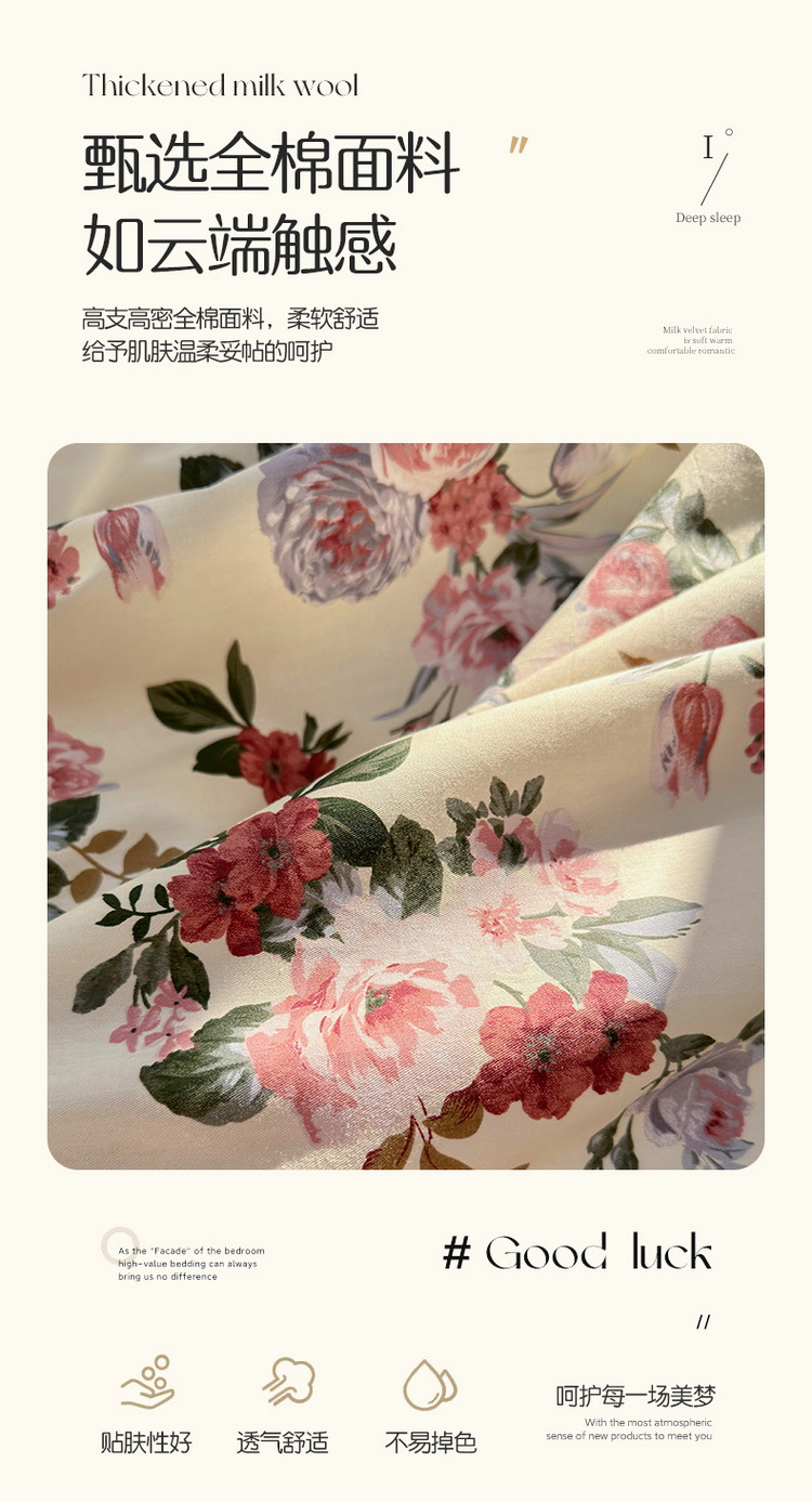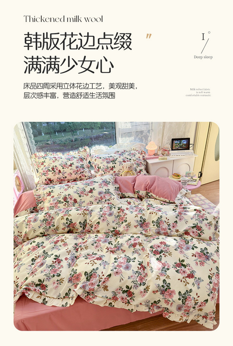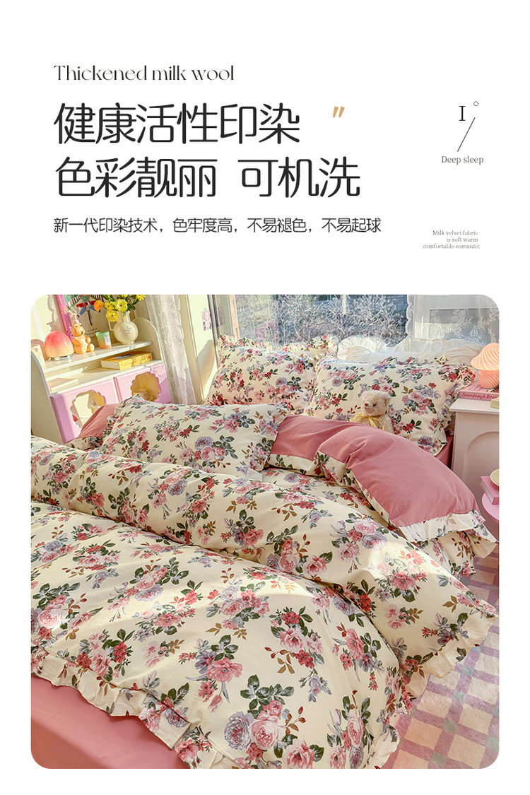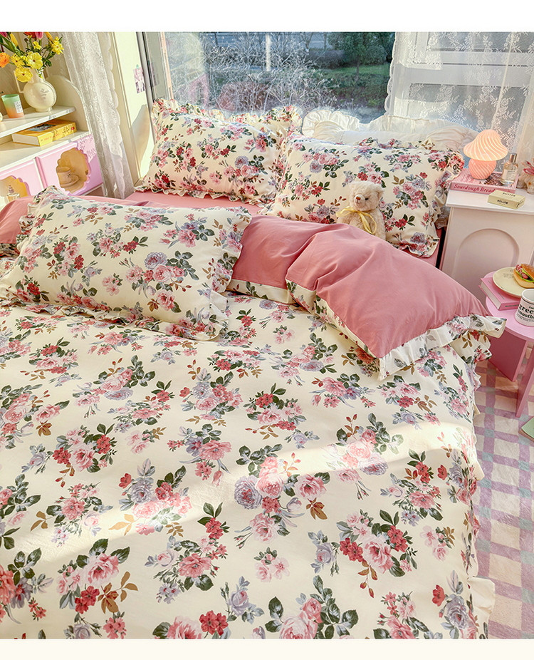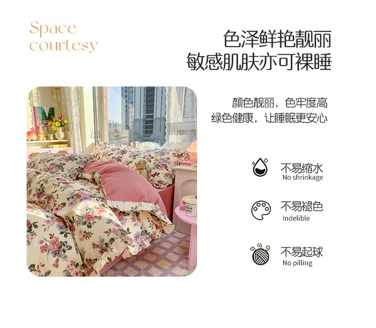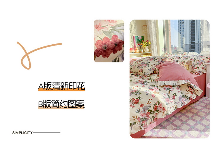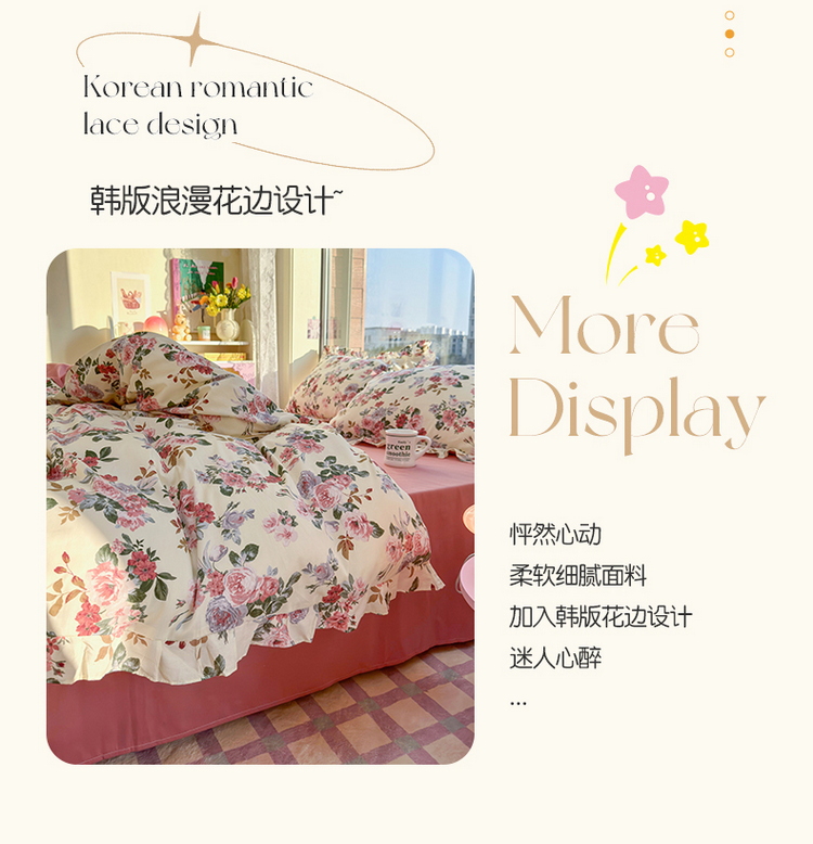 商品名称:蓝邻 2023新款全棉印花韩版花边款四件套 满园芳华