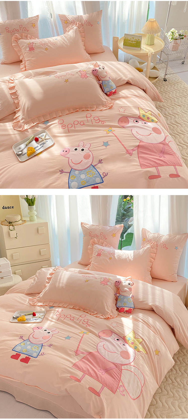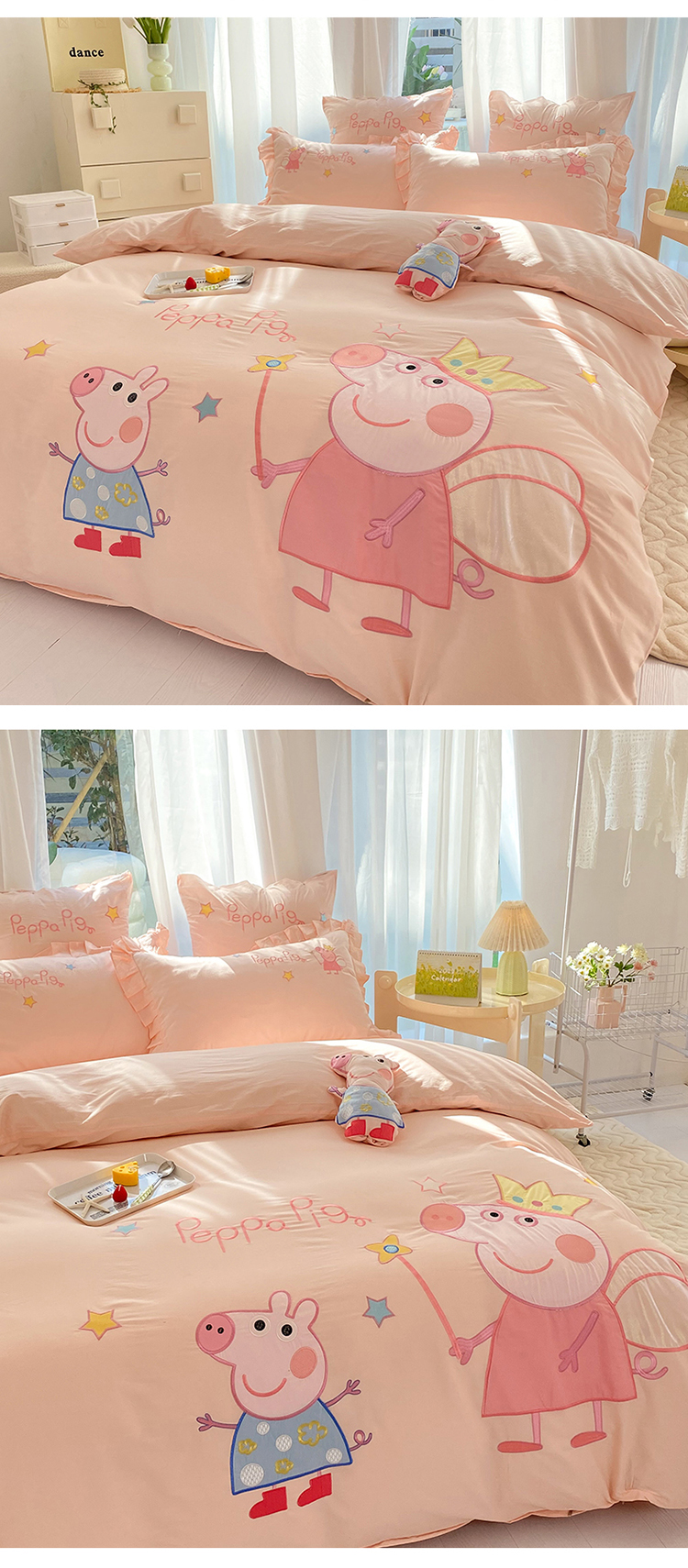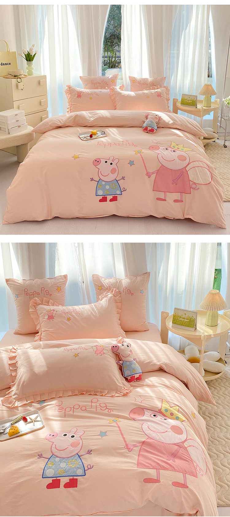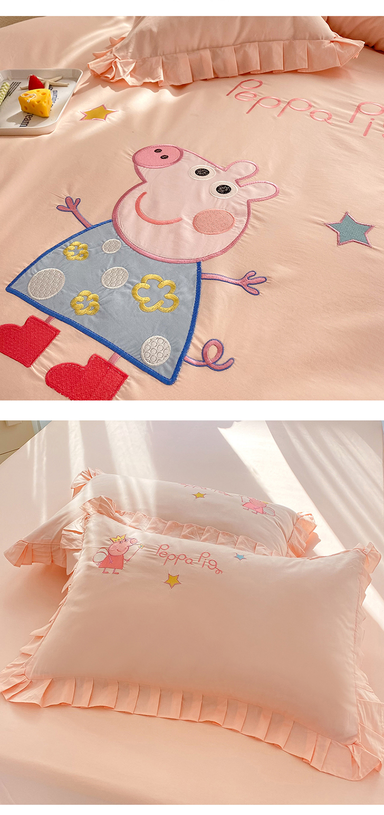 商品名称:绒棉世家 2025新款全棉水洗棉贴布绣四件套 小猪佩奇(带抱枕)