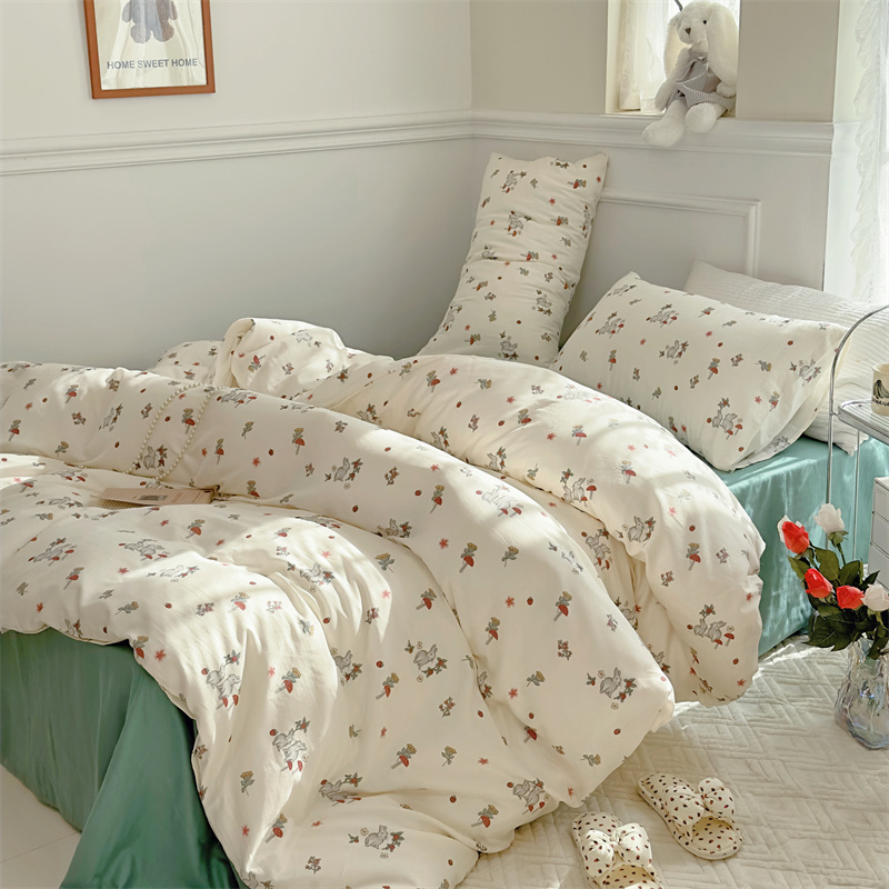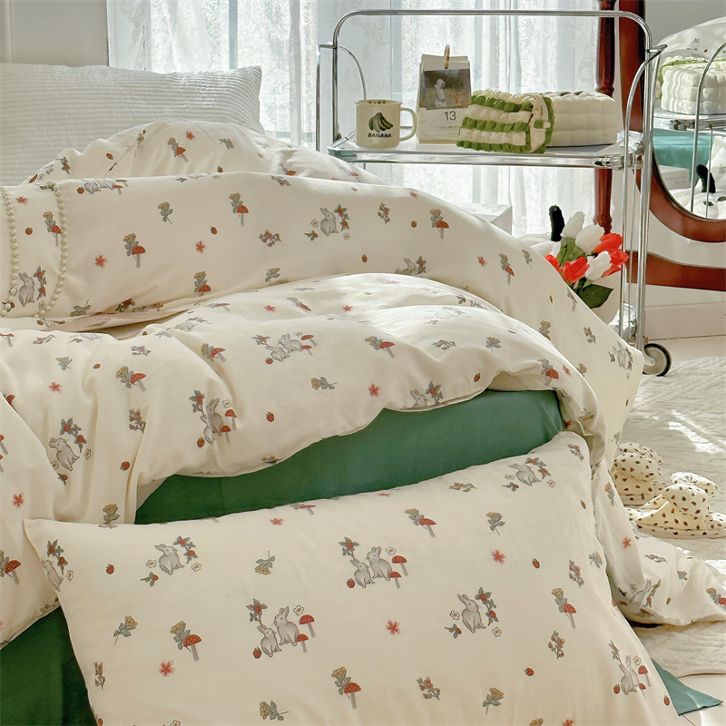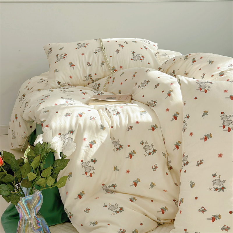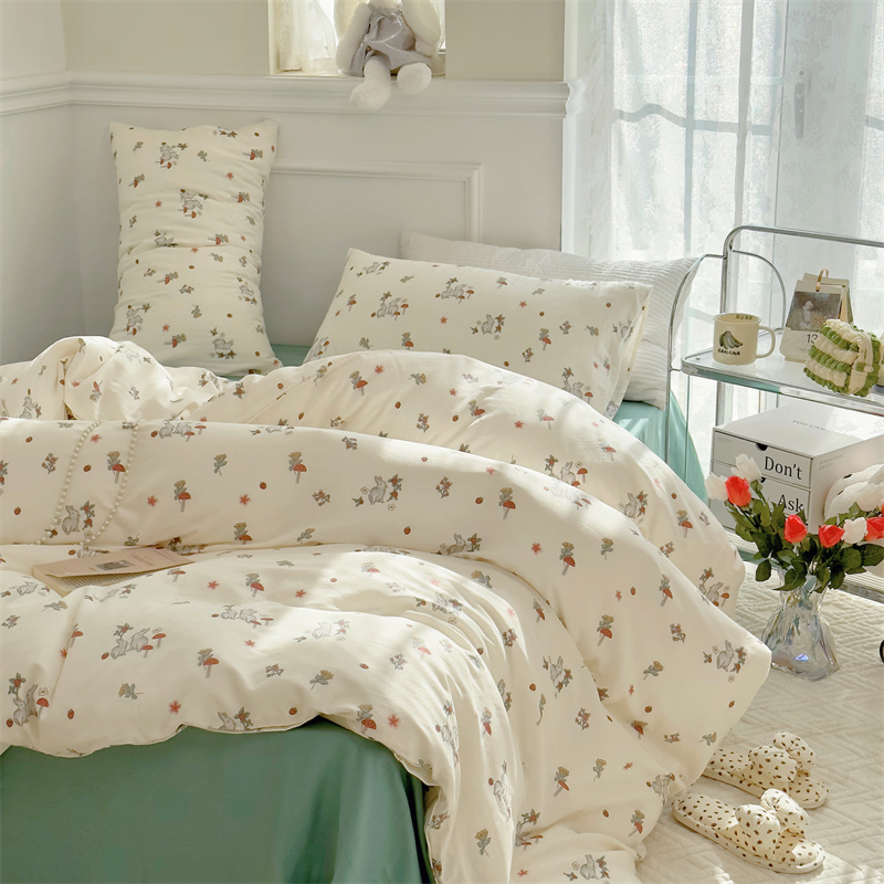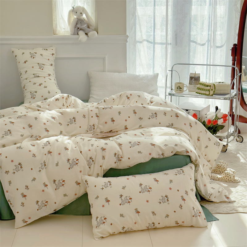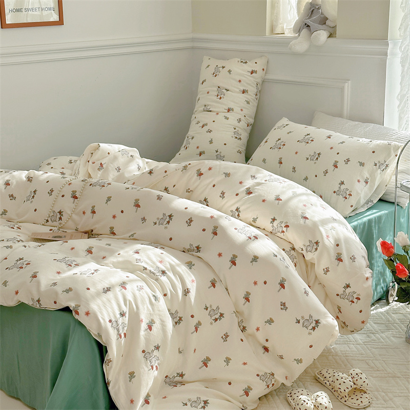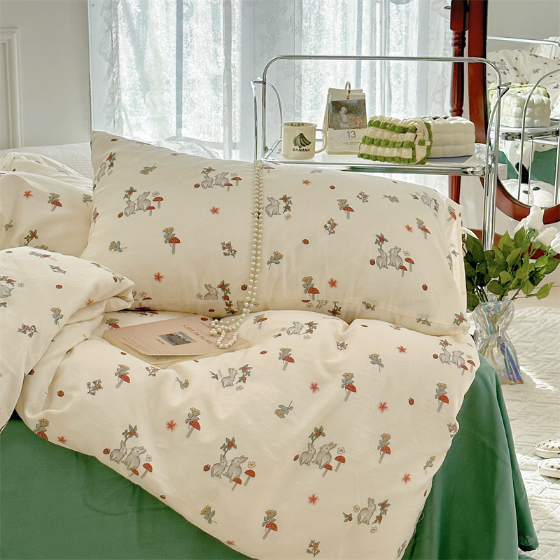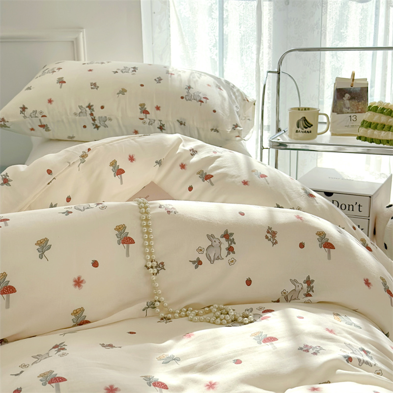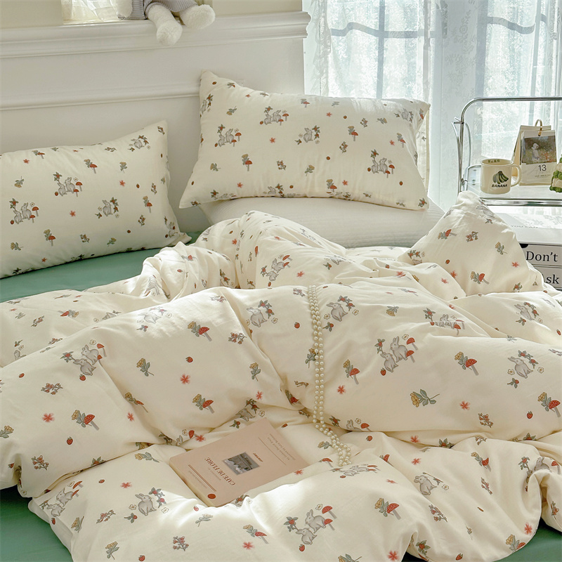 源启生活 新原创A类双层纱布全棉印花四件套纯棉三件套蘑菇小兔