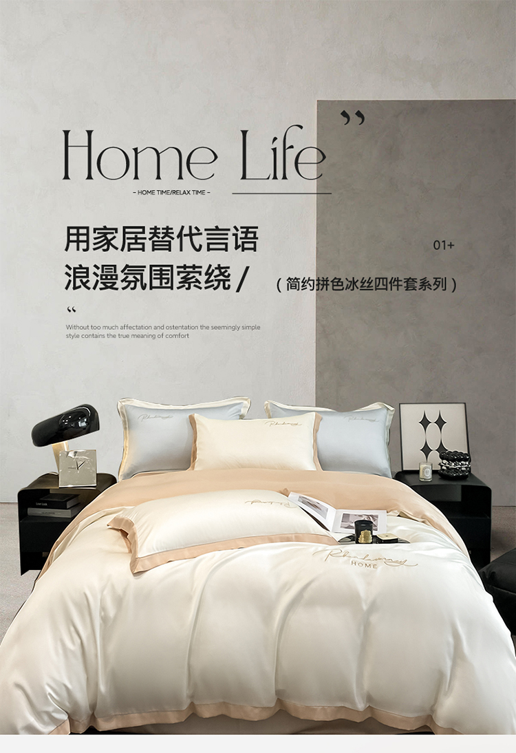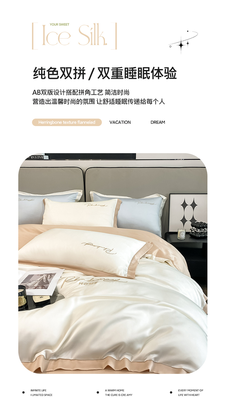 (总)金麦家纺 2025新款冰丝绣花四件套-心愿系列,心愿粉色,心愿燕麦奶,心愿天空蓝,心愿淡雅绿,心愿浅灰