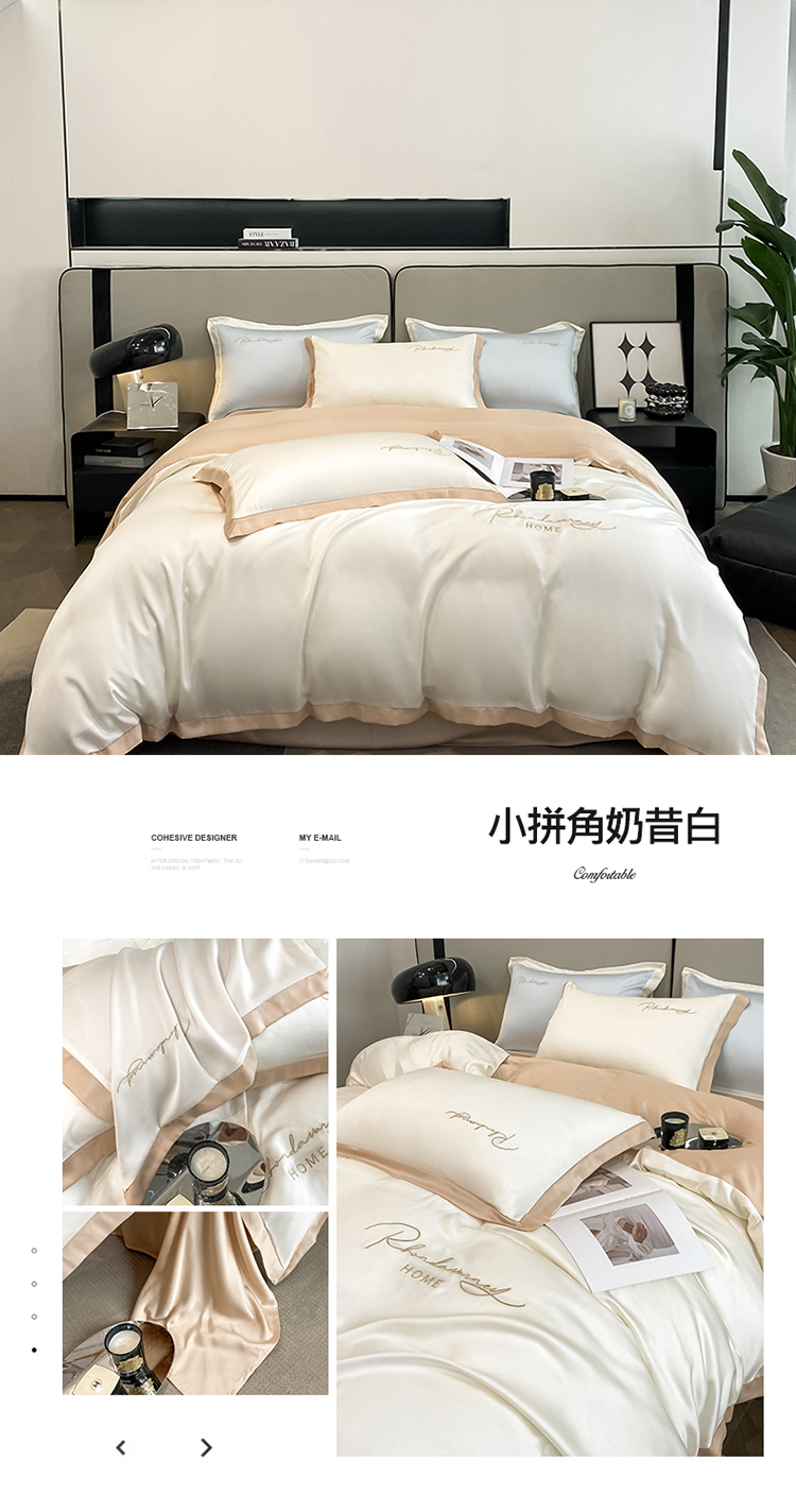 金麦家纺 2023新款冰丝小拼角四件套系列 小拼角奶昔白