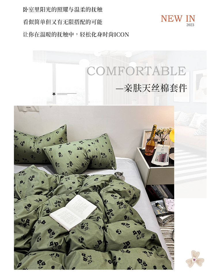当前位置: 91家纺网 > 商品网购 > 床品套件 > 四件套 > 化纤普通四件套 > 宏源2023新款天丝棉花卉四件套 羽衣