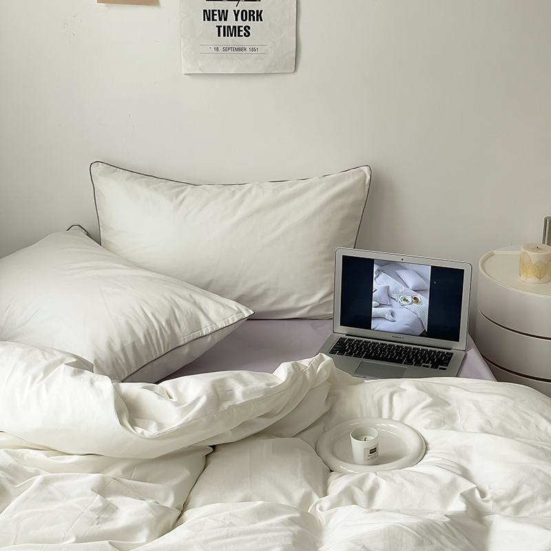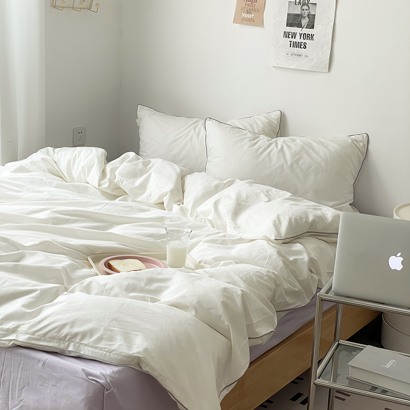 当前位置: 91家纺网 > 商品网购 > 床品套件 > 四件套 > 全棉普通四件套 > 时年 2023新款40支全棉水洗棉嵌绳款四件套--拍法一 象牙白