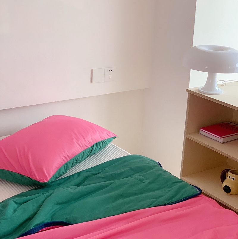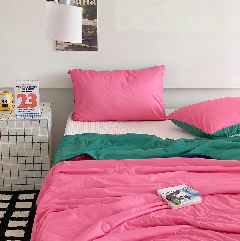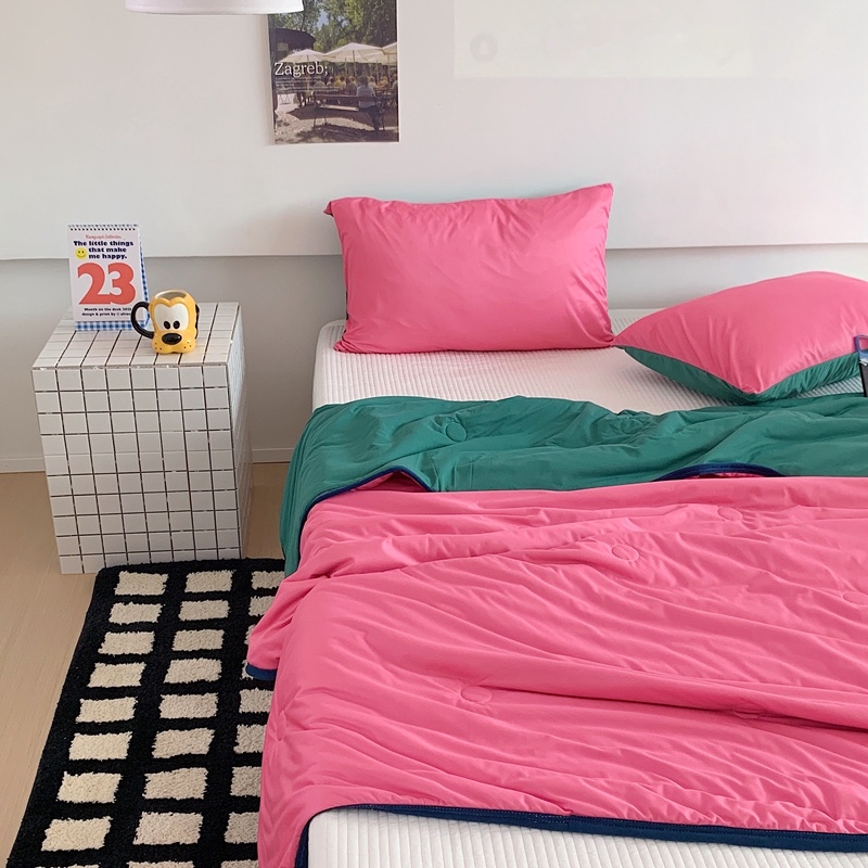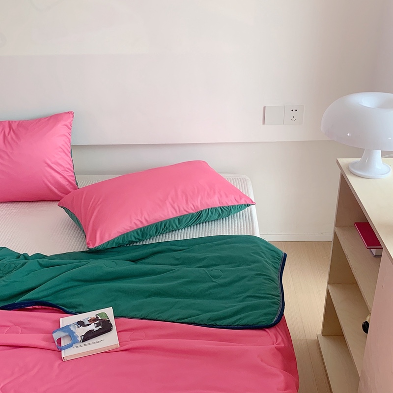 星期八 2023马卡龙针织棉大豆夏被 桃粉深绿