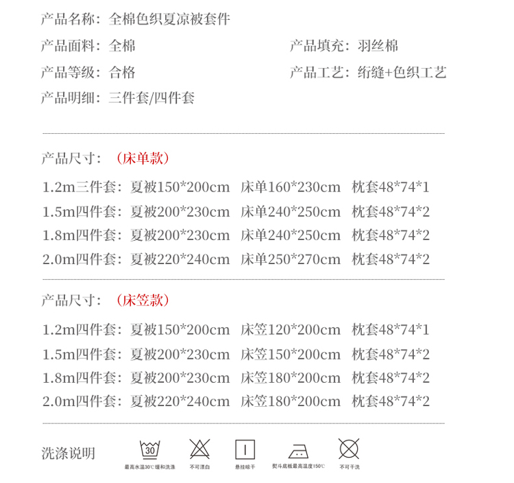 商品名称:(总)寐眠 2023新款全棉色织水洗棉夏被四件套被芯夏凉被子