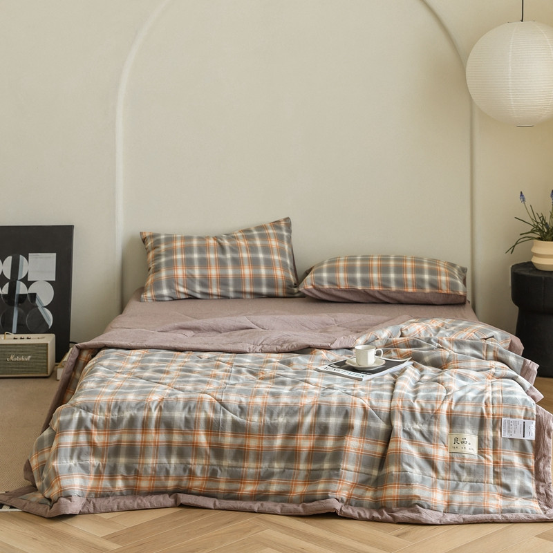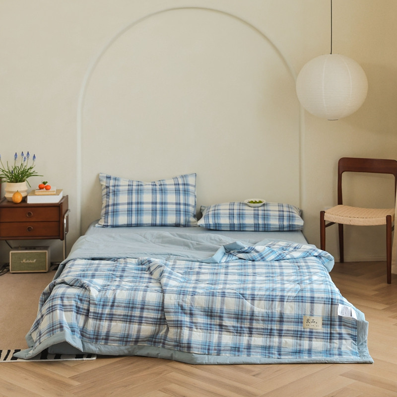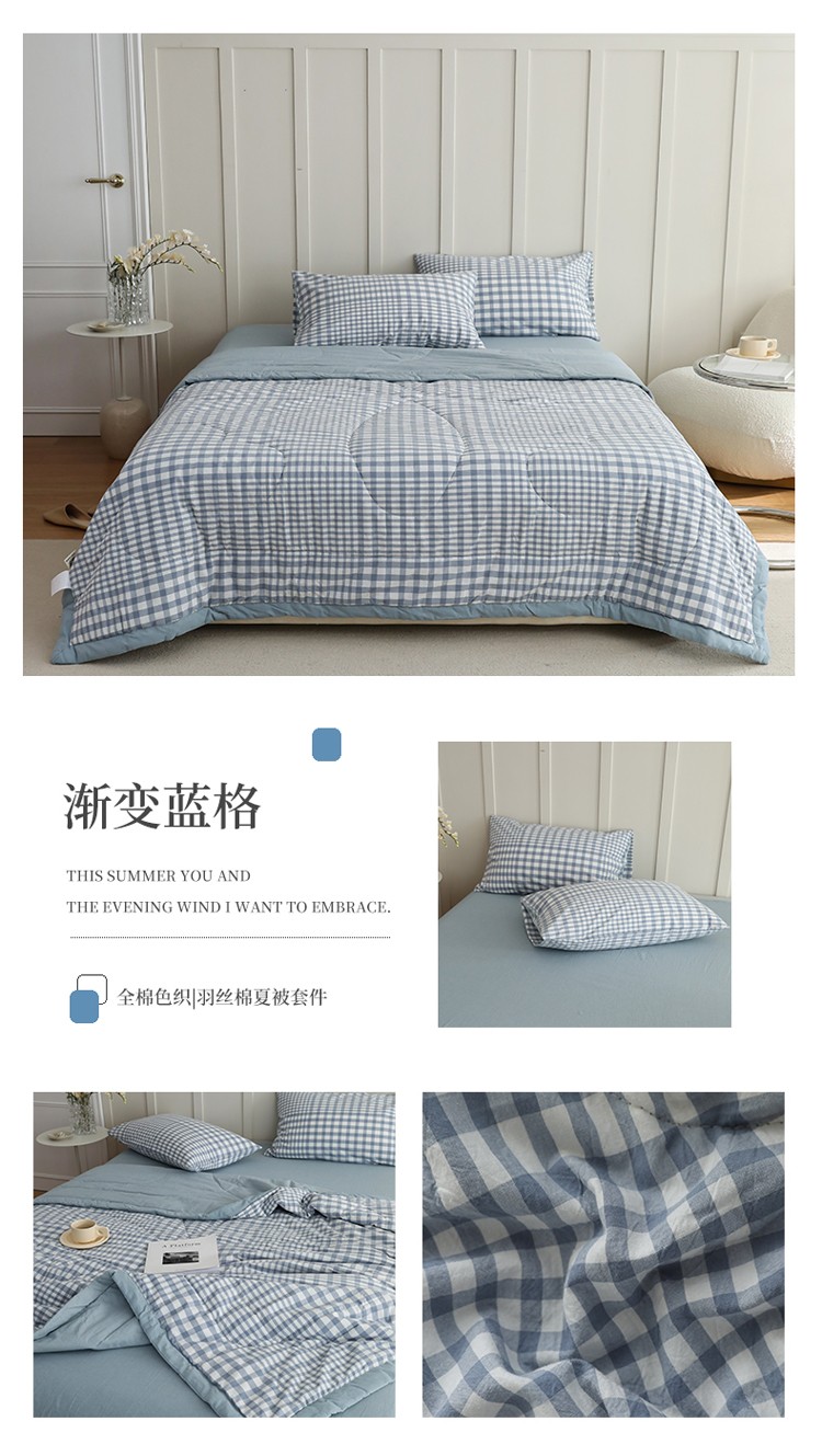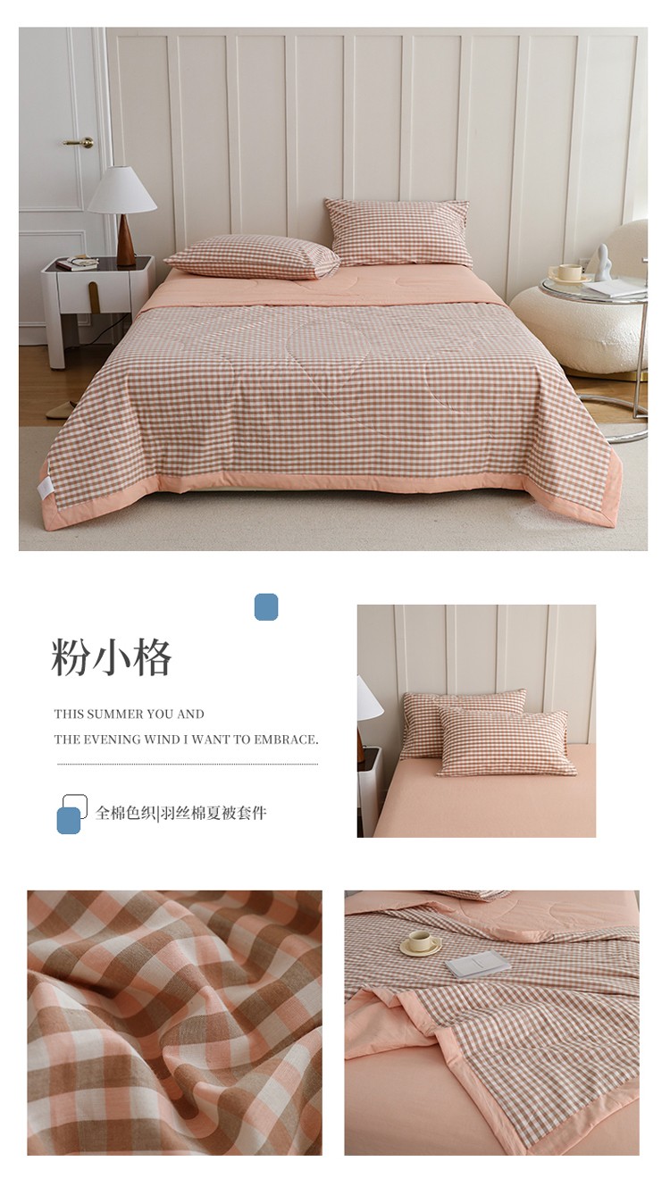 (总)寐眠 2023新款全棉色织水洗棉儿童夏被,粉大格,粉小格,灰白格,蓝大格,蓝小格,雾蓝格,小粉格