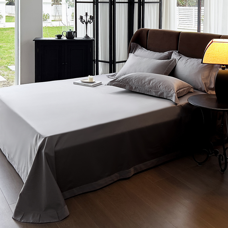 嘉悦50*50S双股长绒棉简约纯色埋绳单品床单邂逅-实拍 邂逅-星辰灰