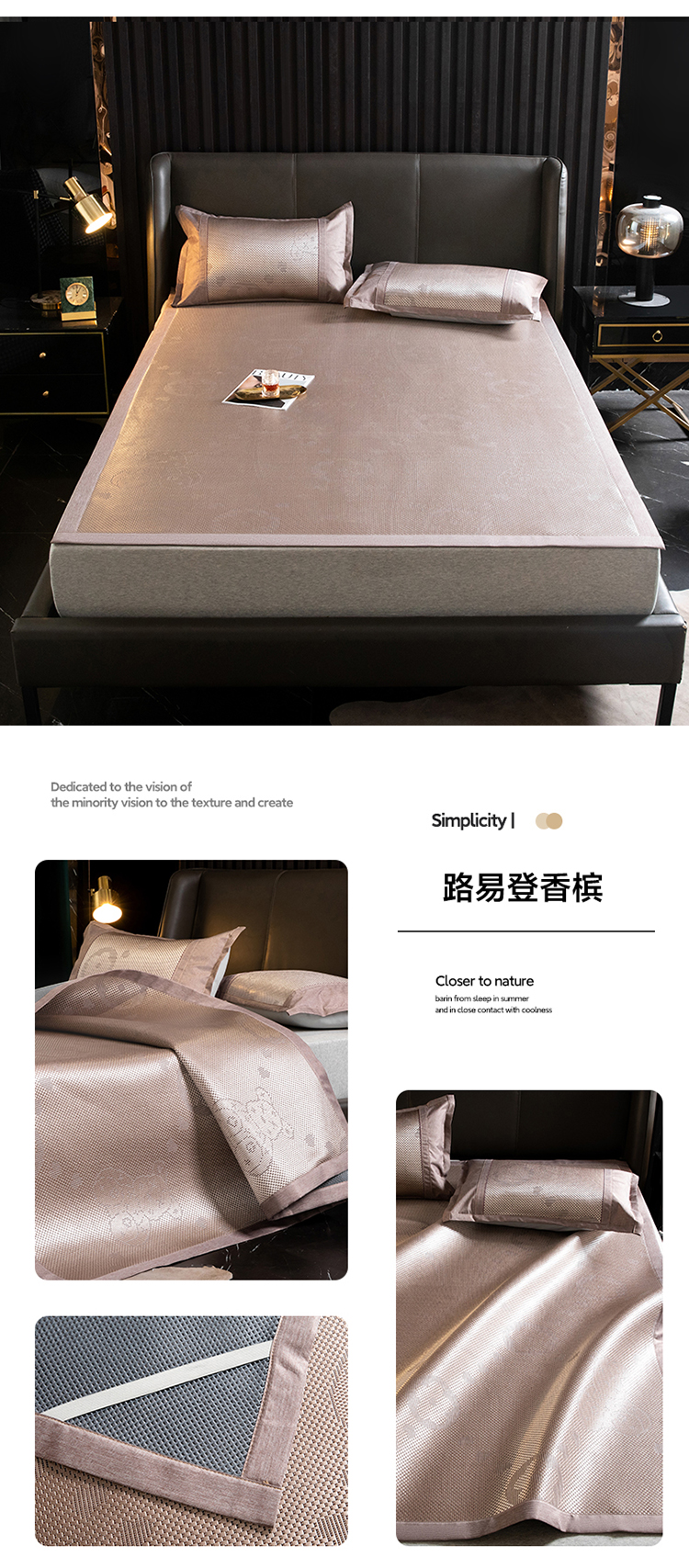 商品名称: 伊被源 2023新款高密度纺织碳光冰藤席 路易登-香槟