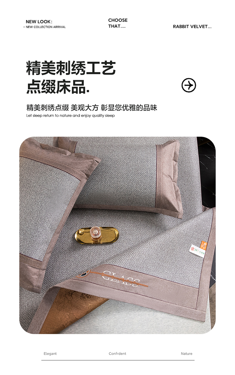 商品名称: 伊被源 2023新款山茶刺绣艾草凉席系列 山茶刺绣艾草草木灰