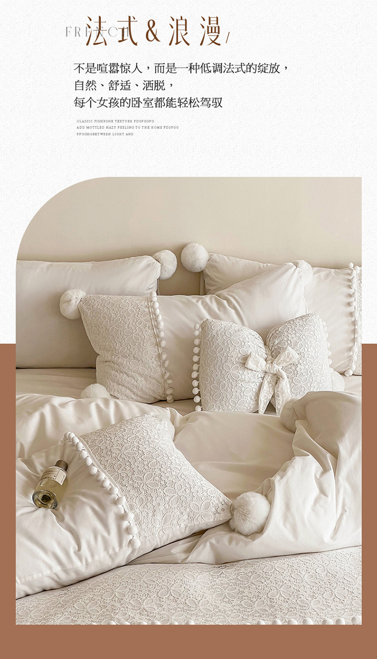 (总)婳庭家居 2025新款60s全棉纯棉MIU系少女法式蕾丝四件套,miu系少女
