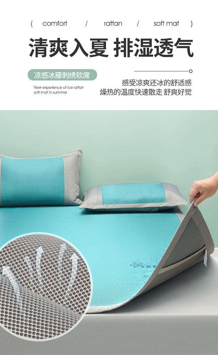 商品名称:2023新款凉感冰藤刺绣软席-冰镇席、酷爽席 酷爽席-水兰
