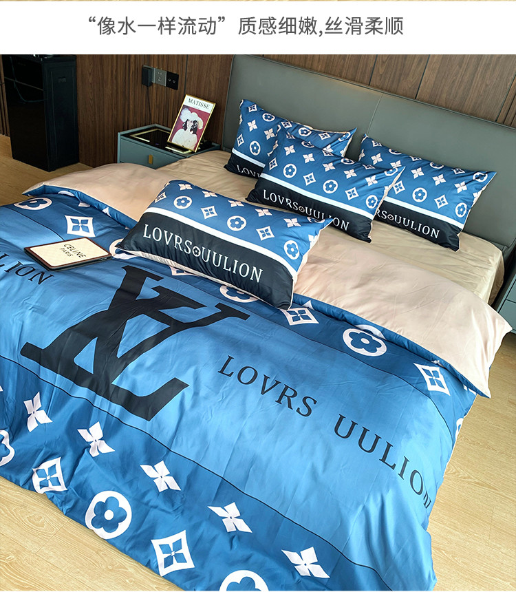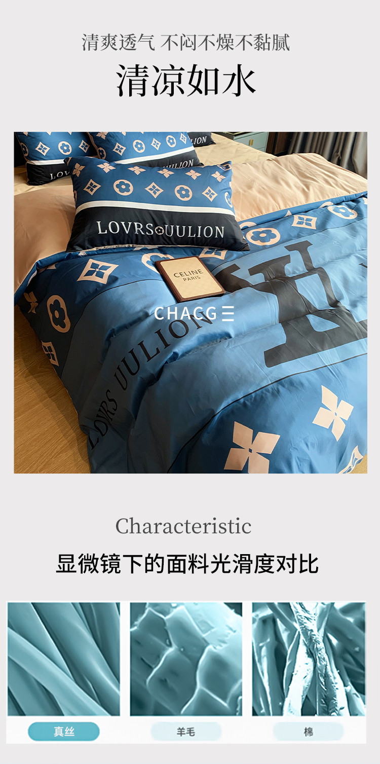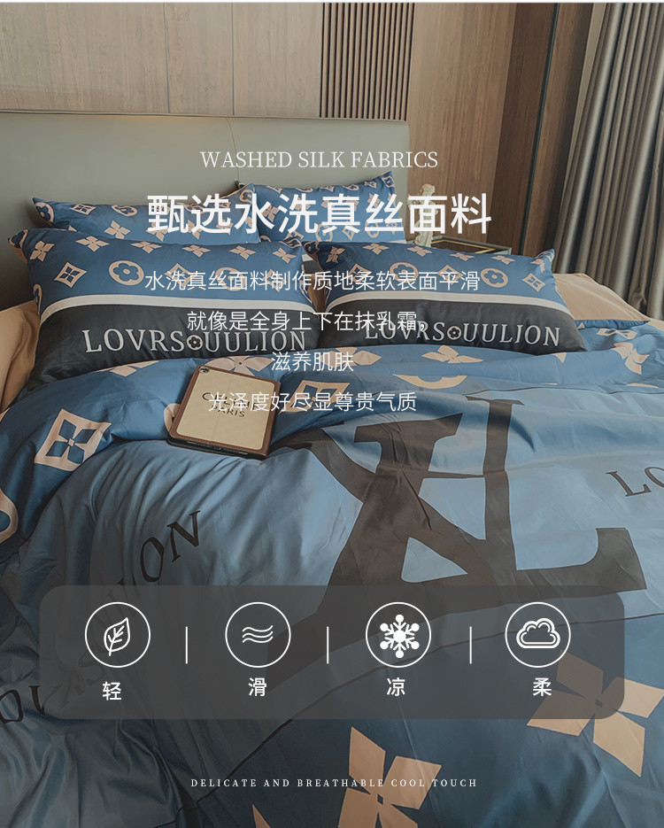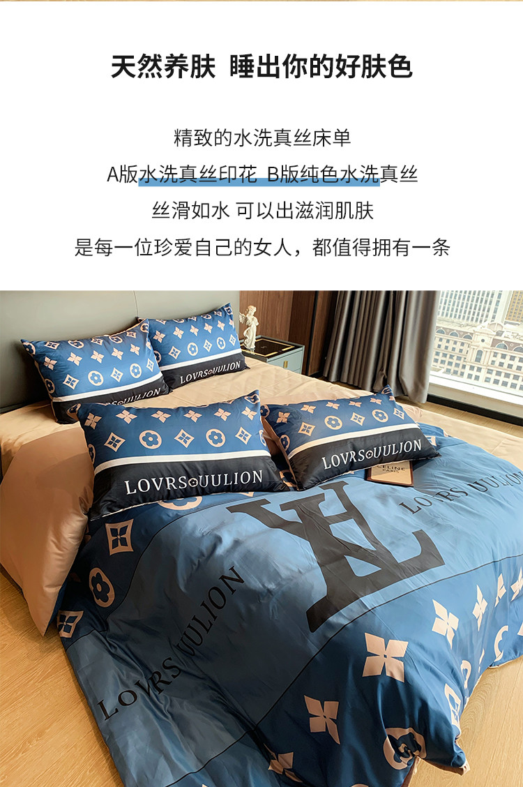 当前位置: 91家纺网 > 商品网购 > 床品套件 > 四件套 > 真丝四件套 > 色鬼布艺 2023新款水洗真丝大牌风四件套 蓝色老花
