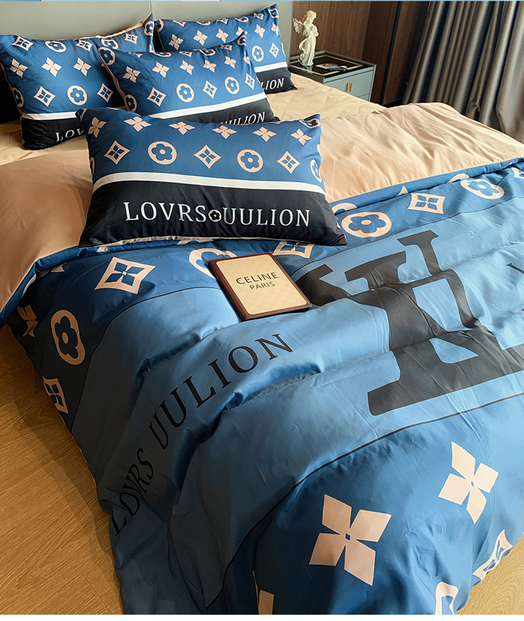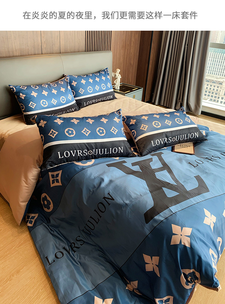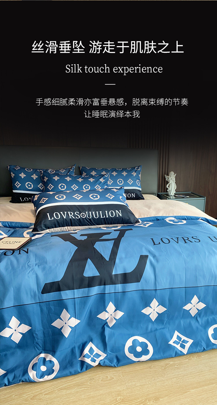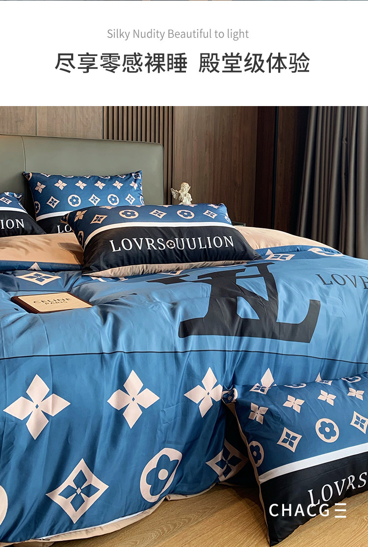 当前位置: 91家纺网 > 商品网购 > 床品套件 > 四件套 > 真丝四件套 > 色鬼布艺 2023新款水洗真丝大牌风四件套 蓝色老花