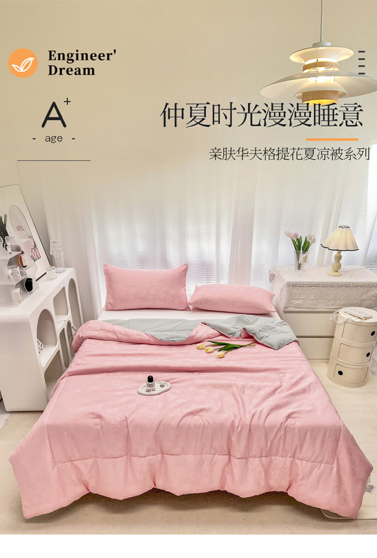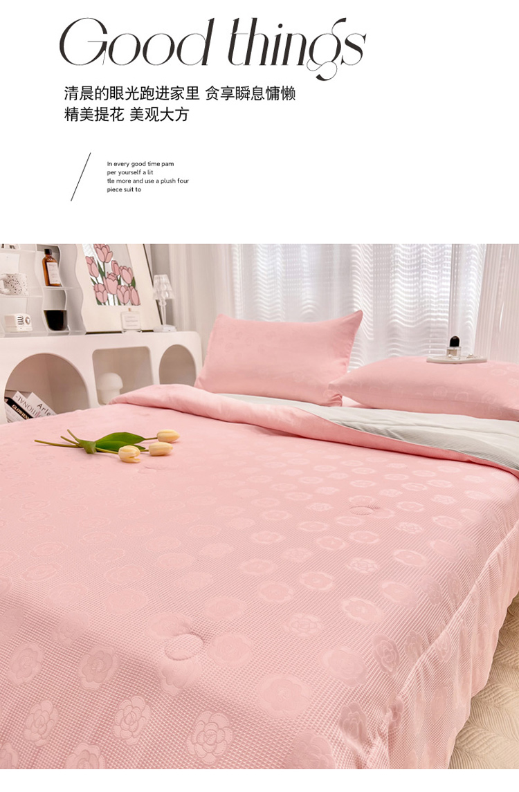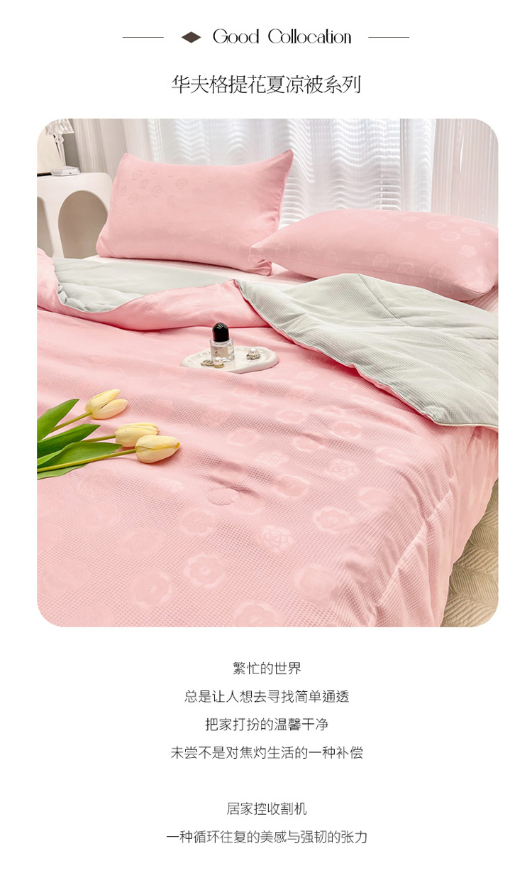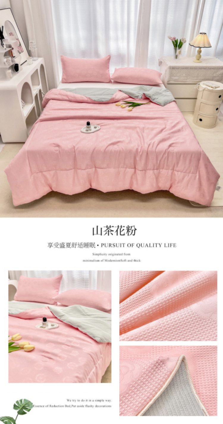 • 91家纺网 家纺一手货源 找家纺 寐居家纺 2023新款华夫格提花夏被 华夫格提花-山茶花粉