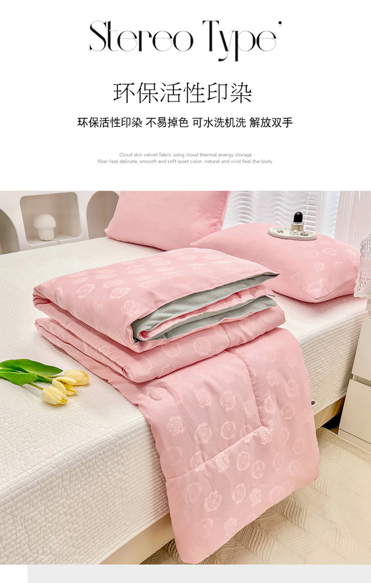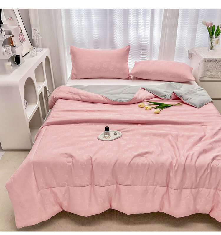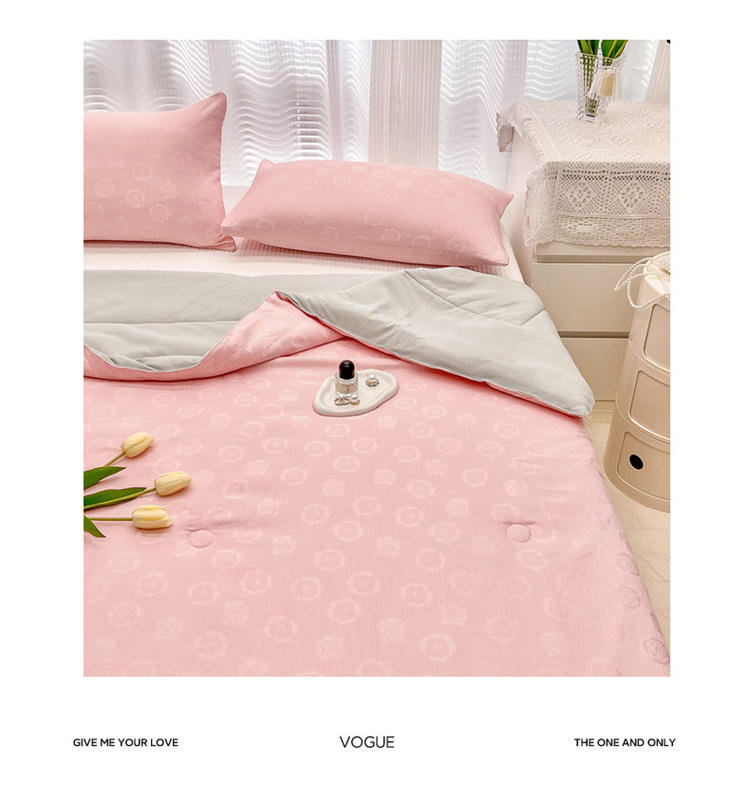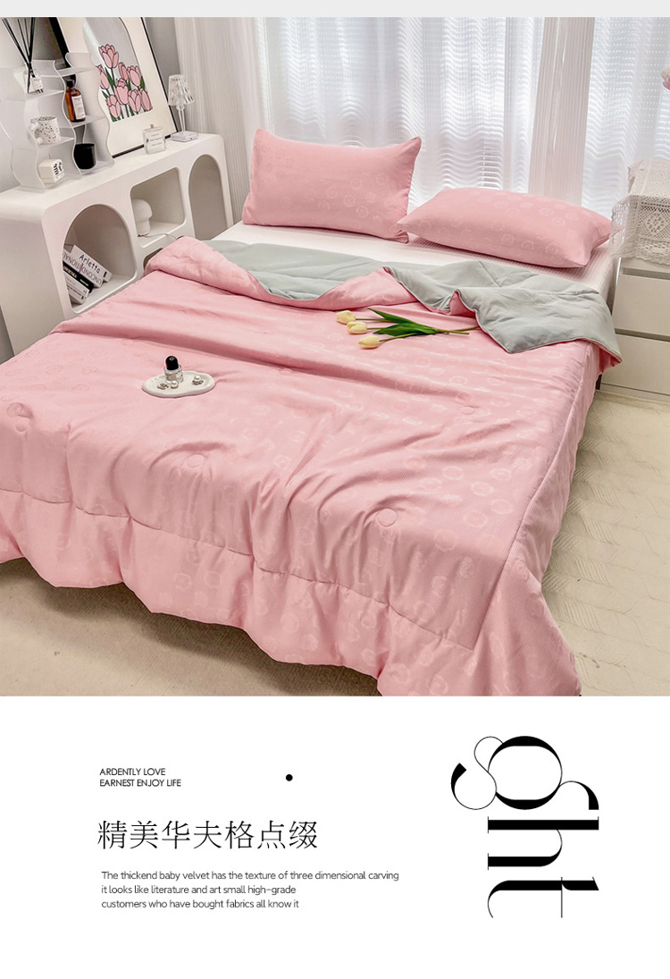 • 91家纺网 家纺一手货源 找家纺 寐居家纺 2023新款华夫格提花夏被 华夫格提花-山茶花粉