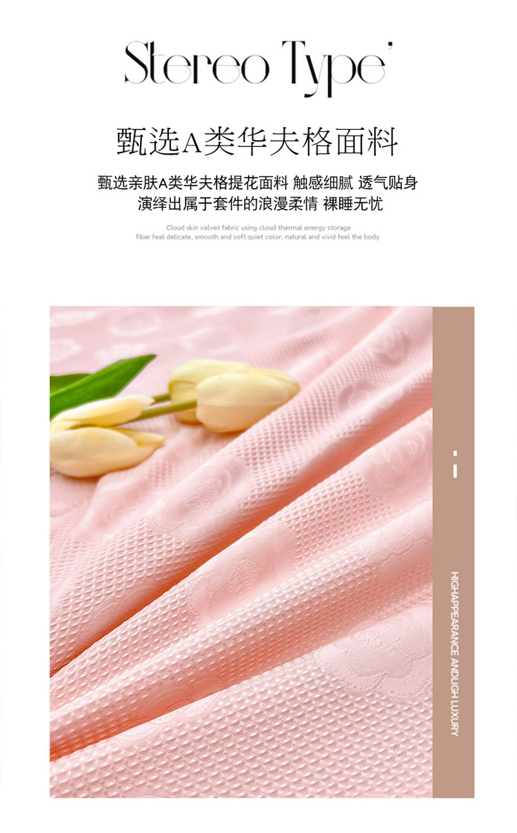 寐居家纺 2023新款华夫格提花夏被 华夫格提花-山茶花粉