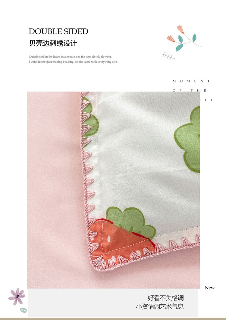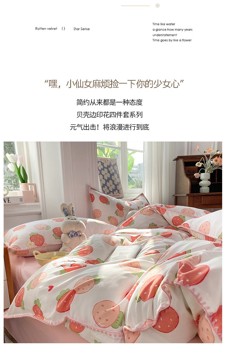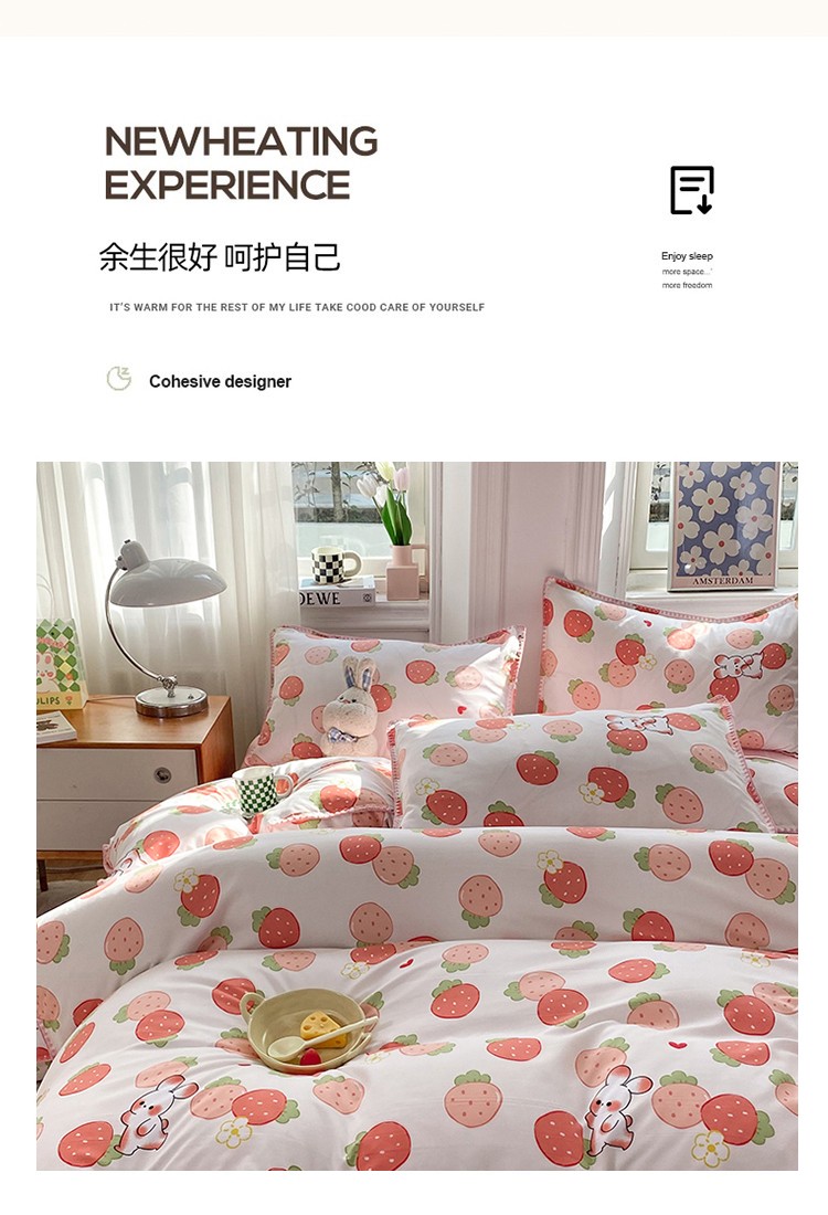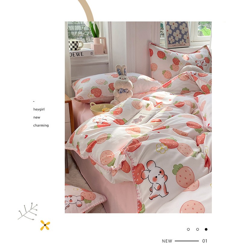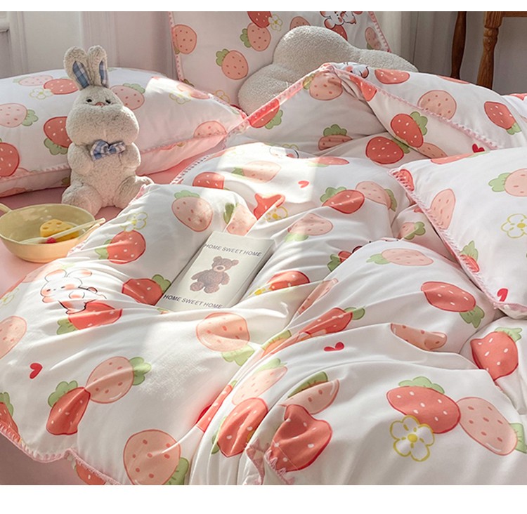 商品名称:妖妖家纺 2023印花水洗双层纱贝克绣四件套 草莓兔