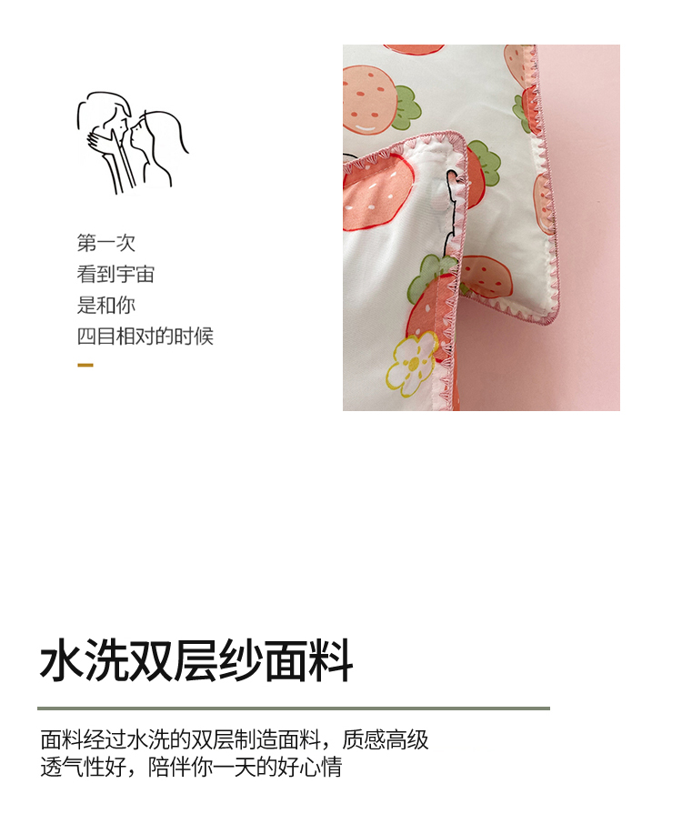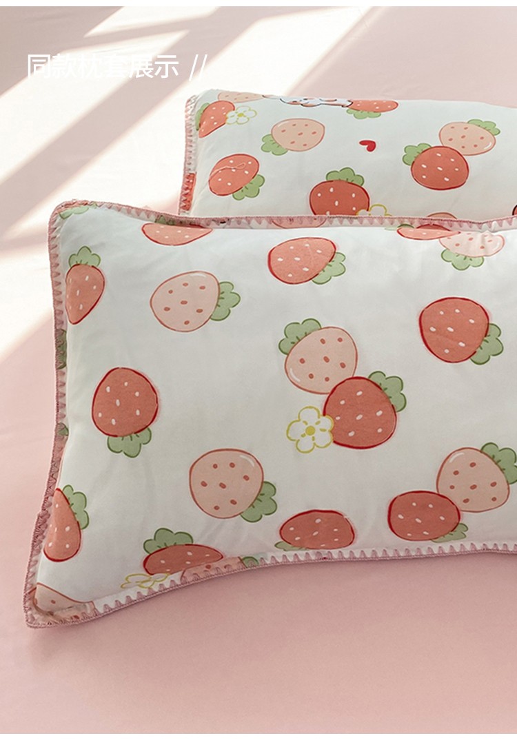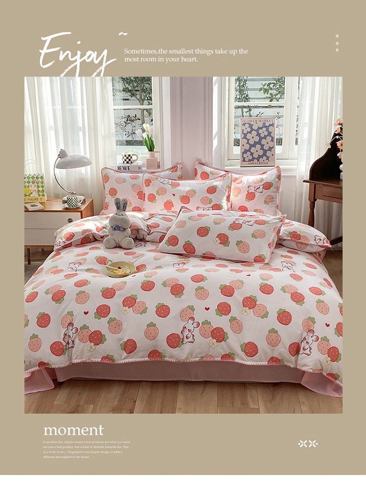 妖妖家纺 2023印花水洗双层纱贝克绣四件套 草莓兔
