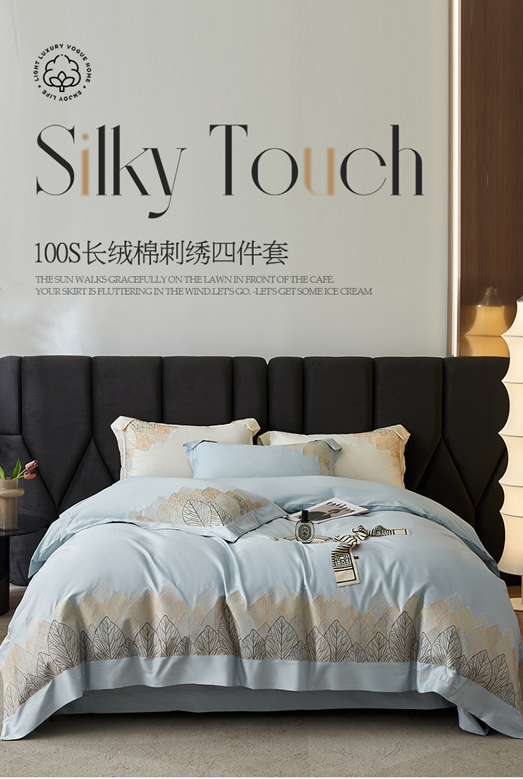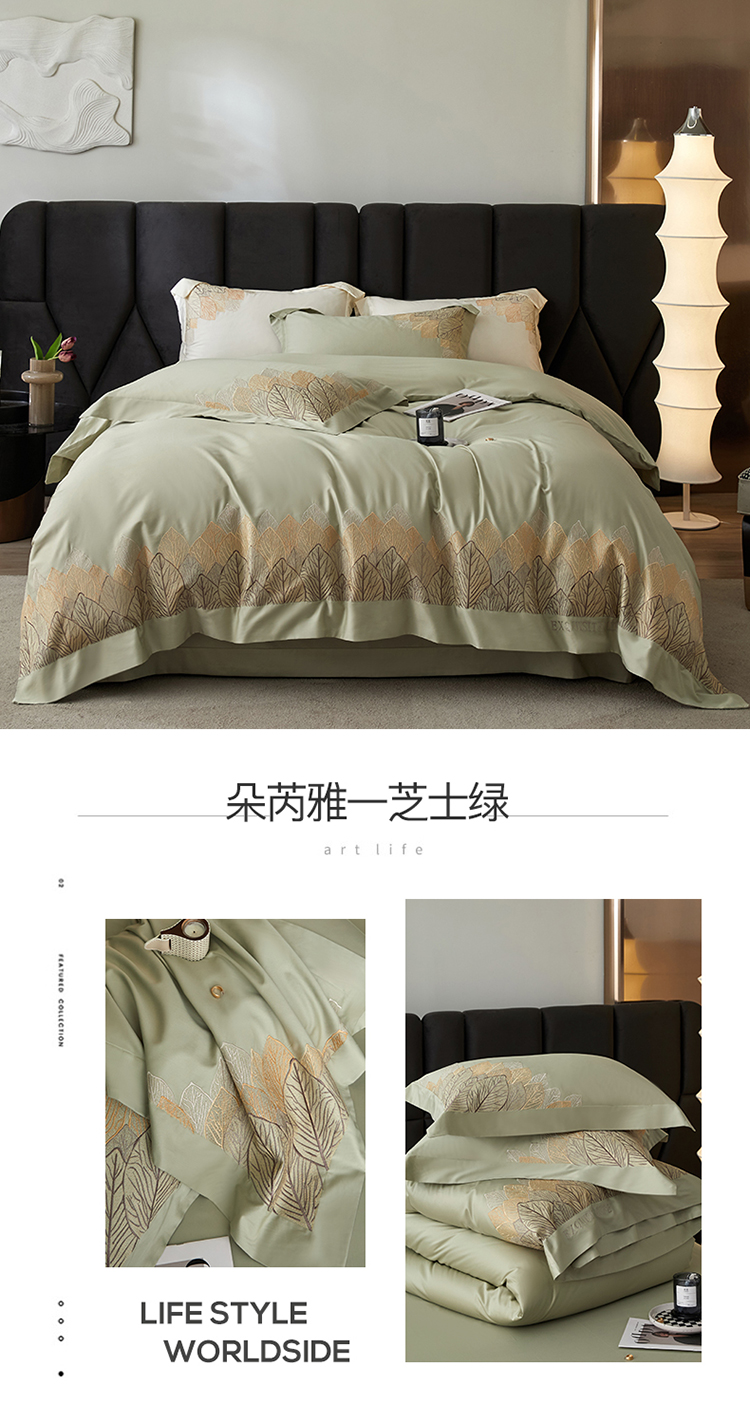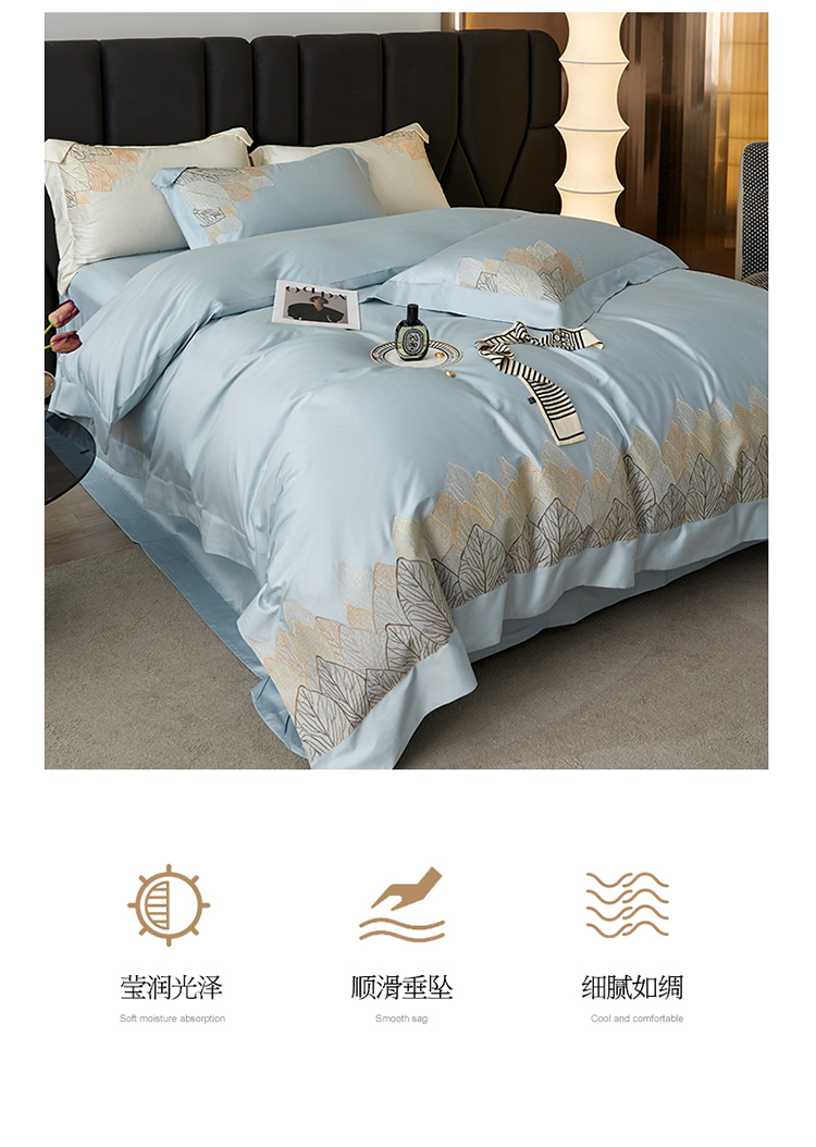 (总)名品优仓 高支高密长绒棉刺绣款四季可用四件套朵芮雅系列