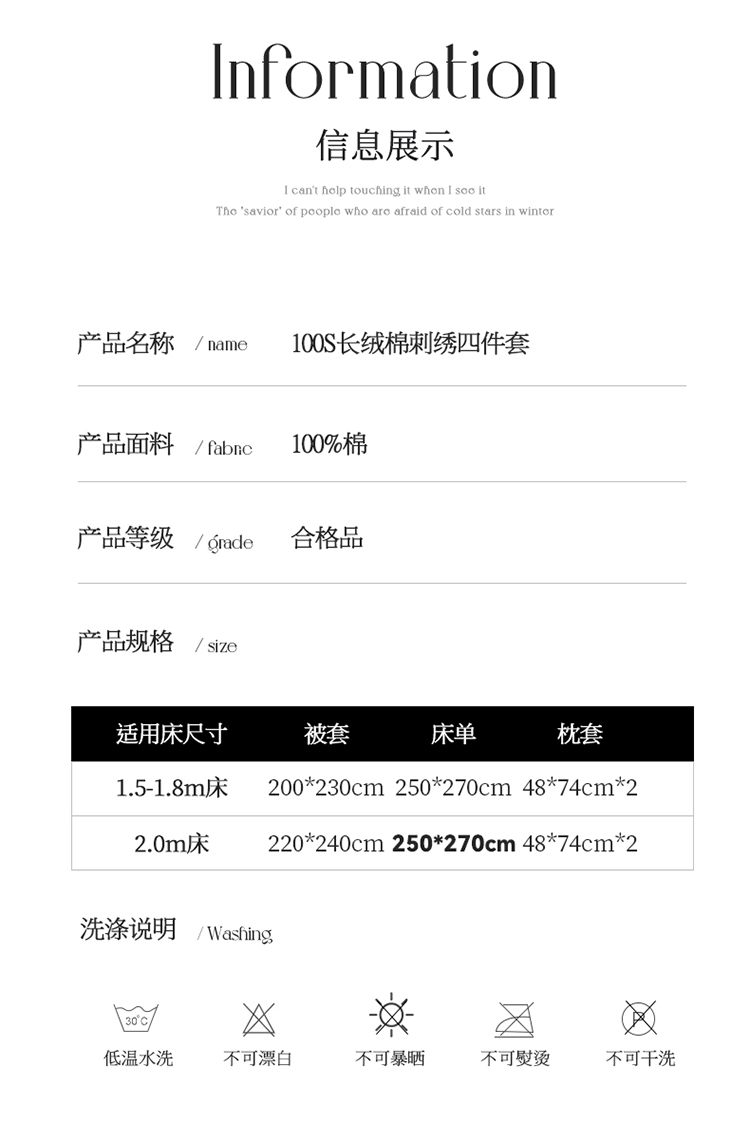商品名称:(总)名品优仓 高支高密长绒棉刺绣款四季可用四件套朵芮雅系列