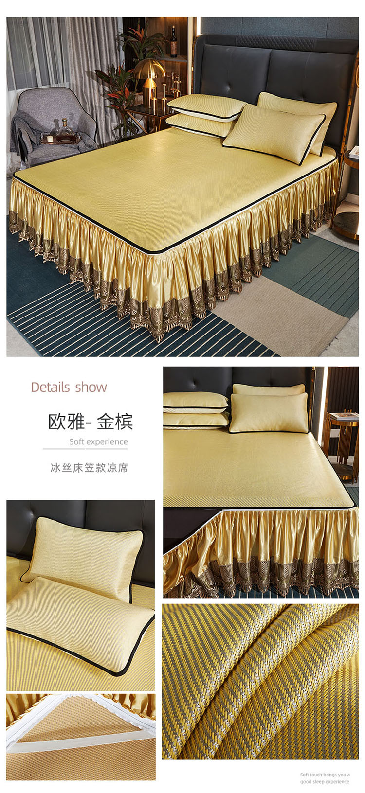 商品名称:恋尚 2024新款冰藤软凉席床裙款三件套(可脱卸) 欧雅- 金槟