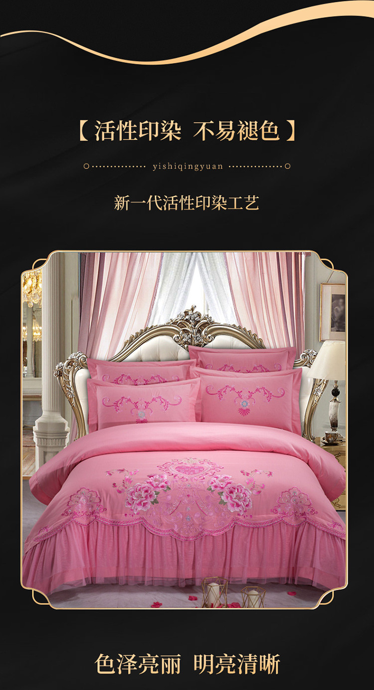慕她婚庆四件套大红色大花结婚全棉纯棉刺绣花多件套直播 花蔓喜多玉色