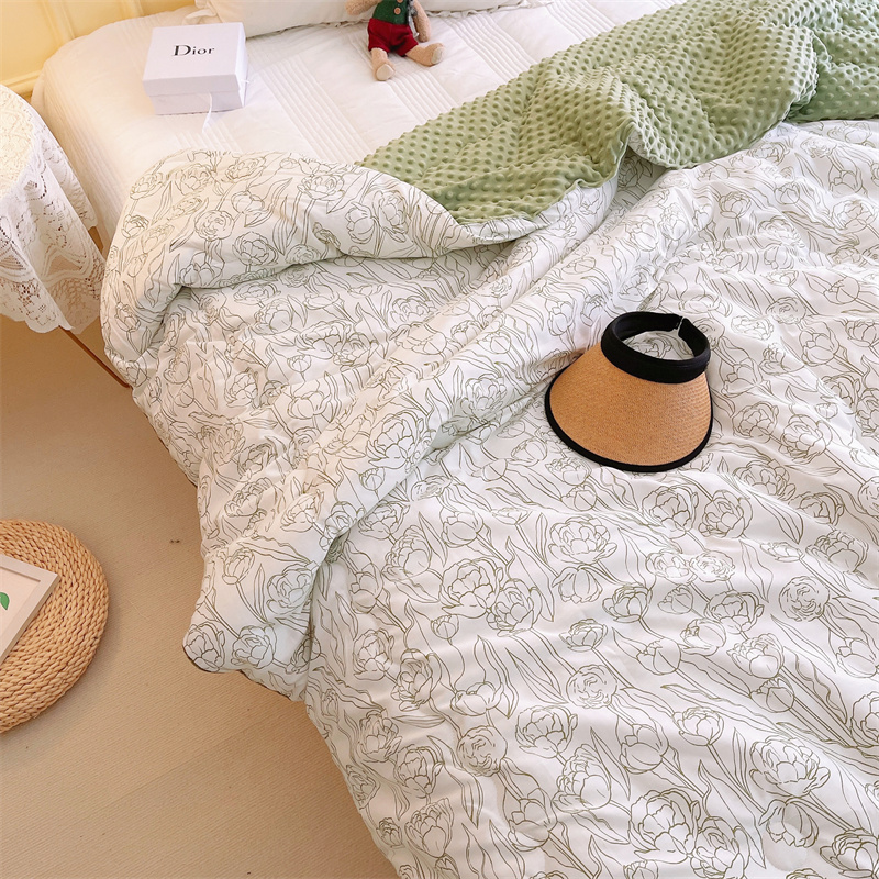 (总)云木里 2025新款A版牛奶绒B版菠萝格夹棉绗绣三层毯盖毯毯子,格子恐龙,好看女孩,灰蓝,灰色,卡其,墨绿,奶黄,浅粉,浅蓝,秋风绿,小猫鱼,中格灰