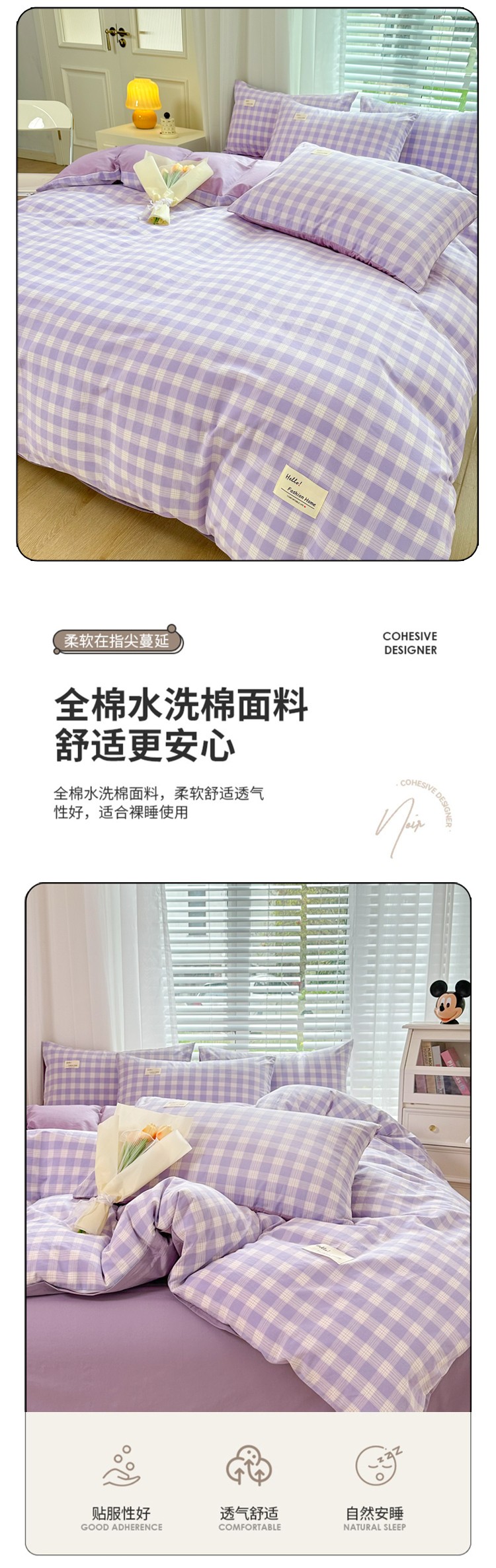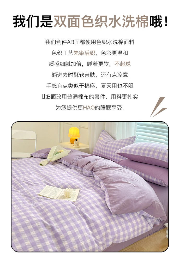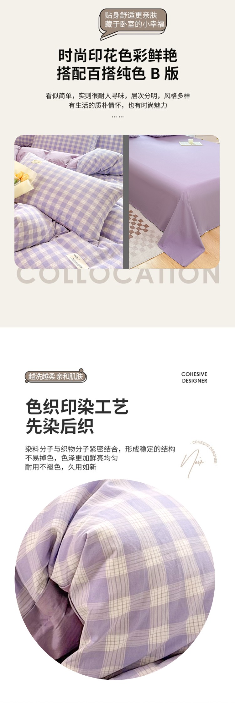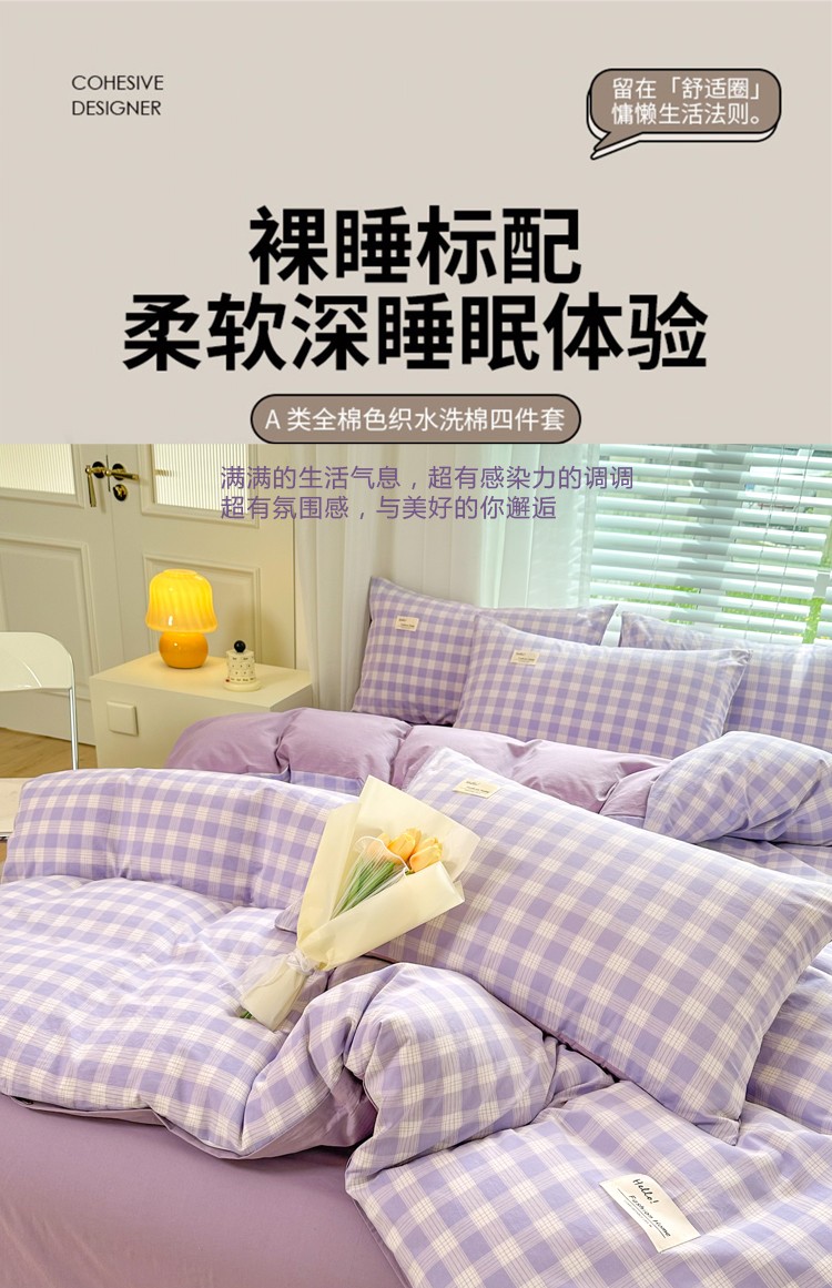 当前位置: 91家纺网 > 商品网购 > 床品套件 > 四件套 > 全棉普通四件套 > 尹黛尔 2024全棉色织水洗棉四件套纯棉被套床单床笠学生三件套 恩格紫