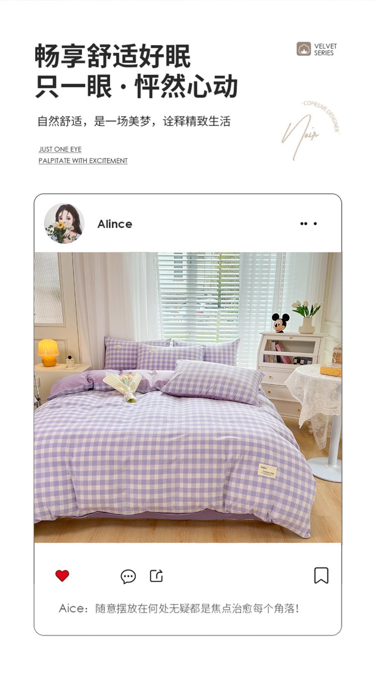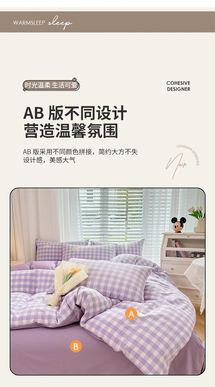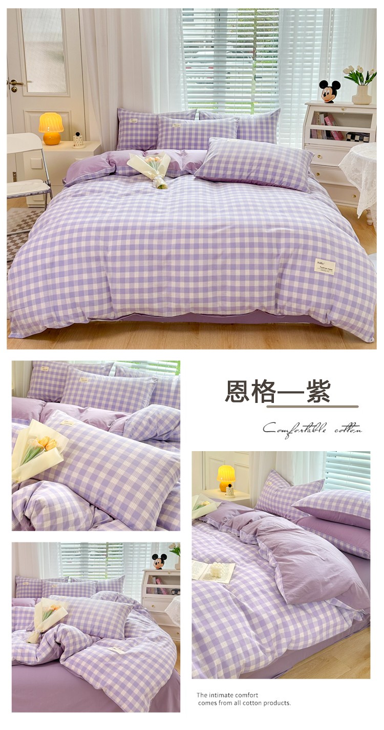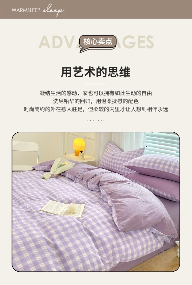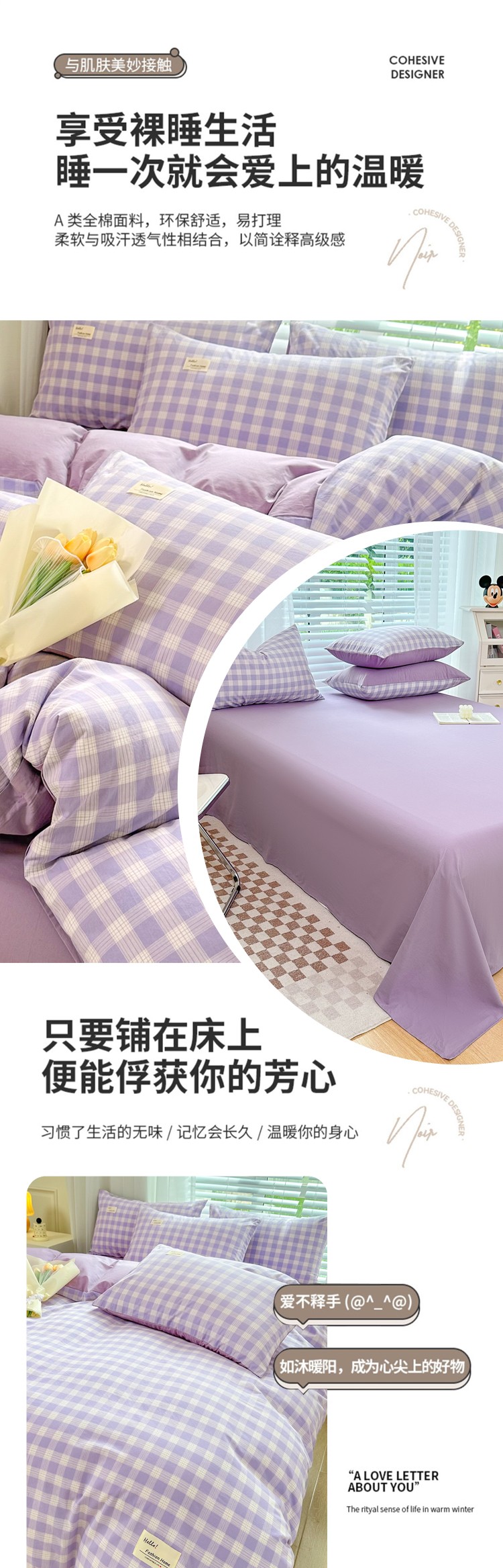 当前位置: 91家纺网 > 商品网购 > 床品套件 > 四件套 > 全棉普通四件套 > 尹黛尔 2024全棉色织水洗棉四件套纯棉被套床单床笠学生三件套 恩格紫