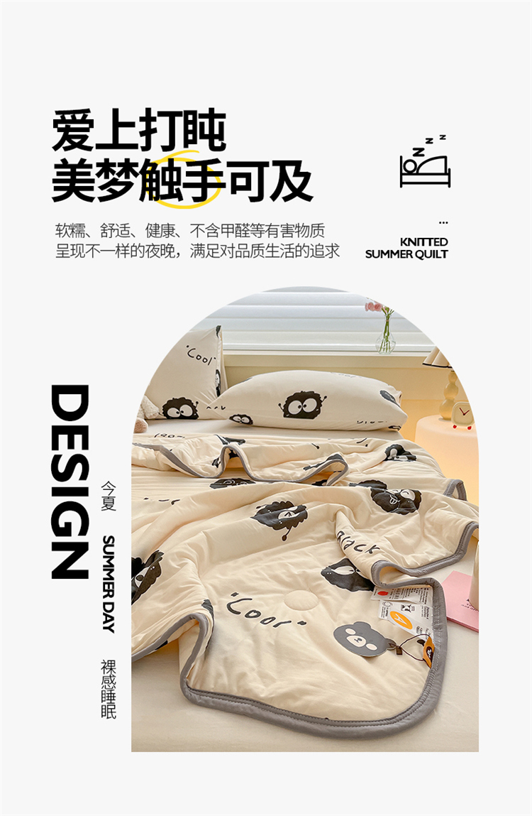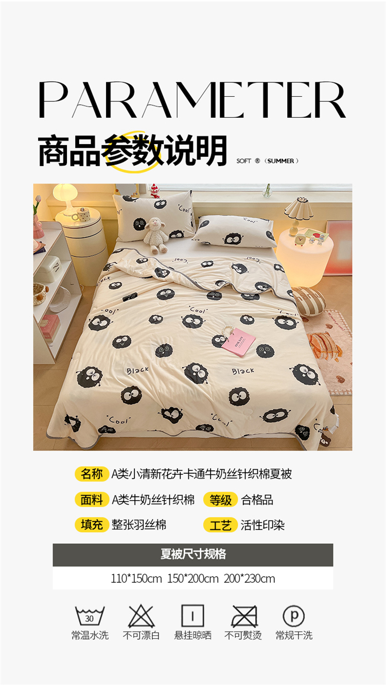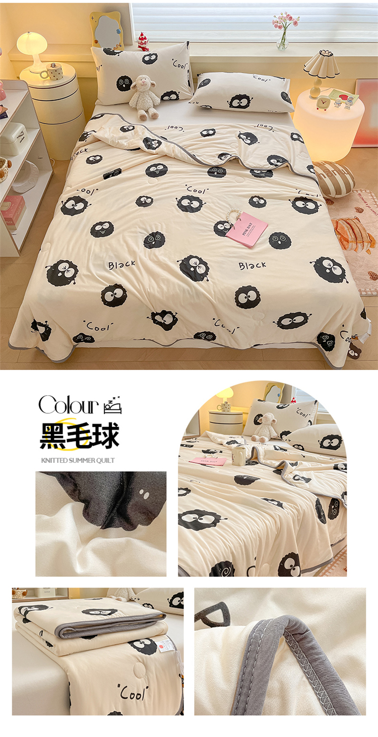 商品名称:桃子 2023新款A类ins高品质小清新花卉卡通牛奶丝针织棉夏被 针织棉夏被-黑毛球
