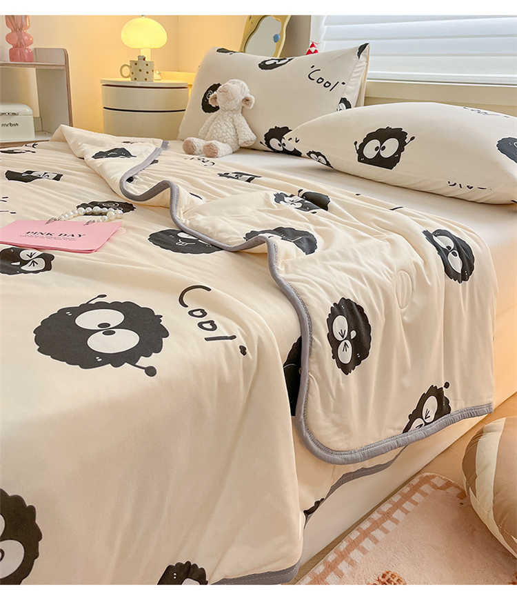 桃子 2023新款A类ins高品质小清新花卉卡通牛奶丝针织棉夏被 针织棉夏被-黑毛球