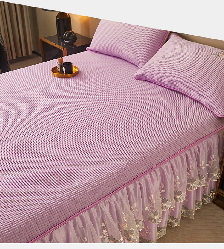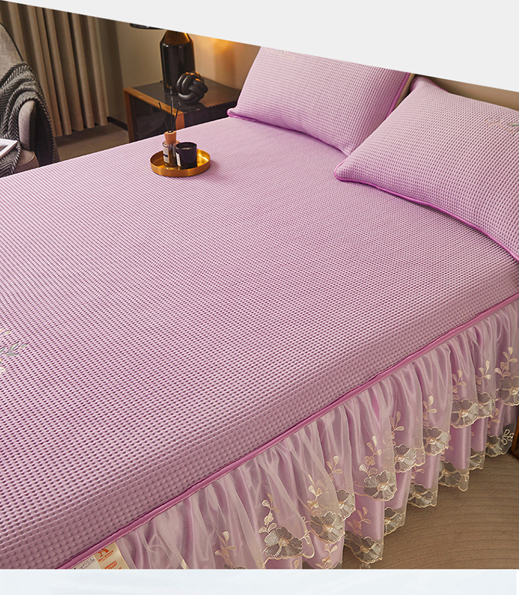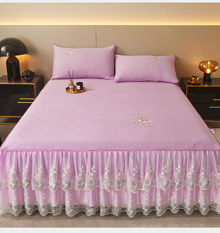 恒爱 2023 刺绣华夫格床裙三件套 优雅紫(床裙款)