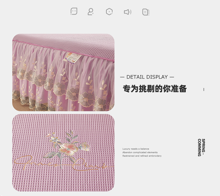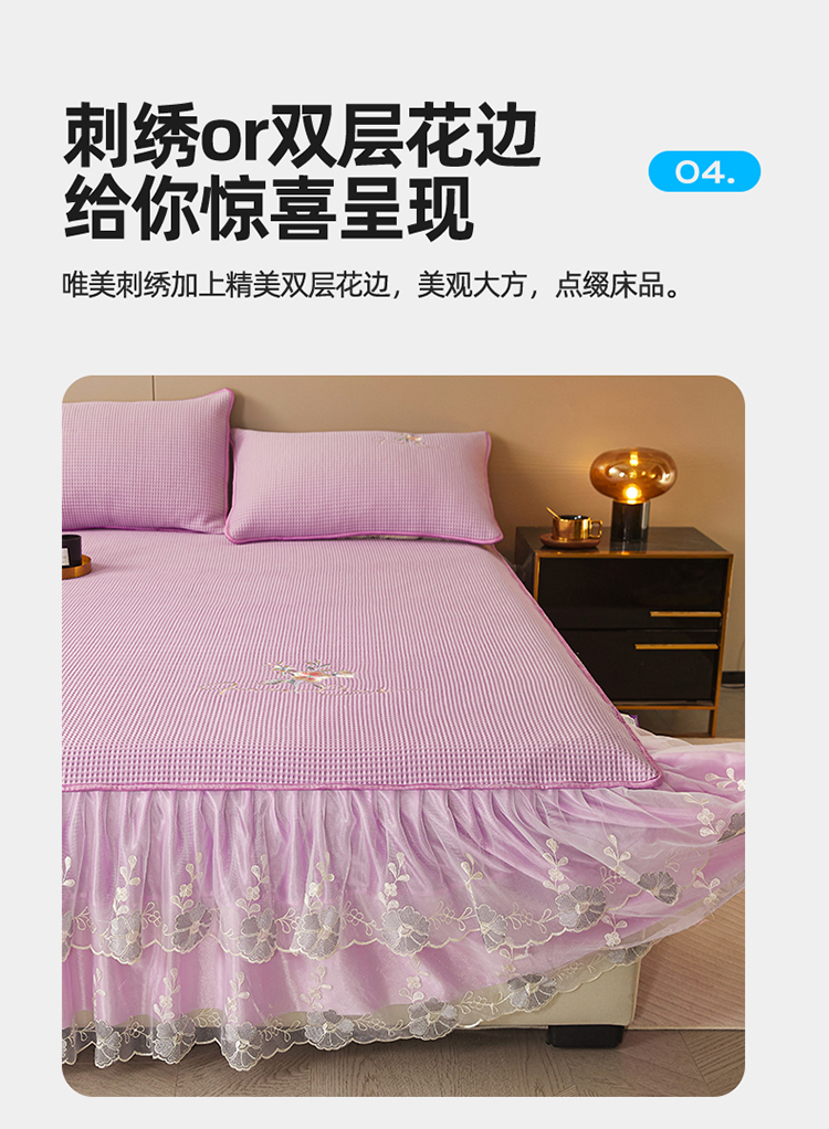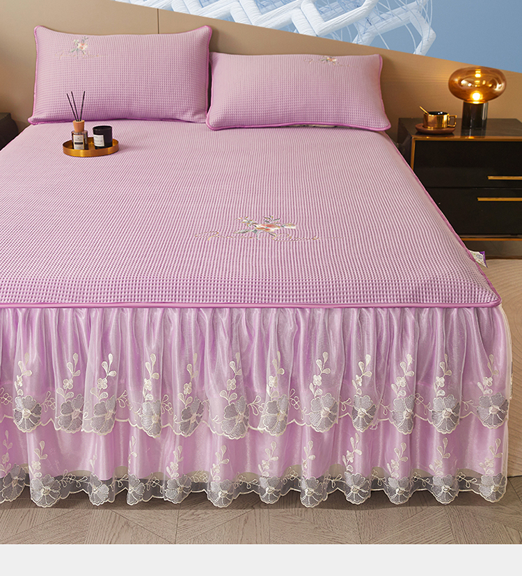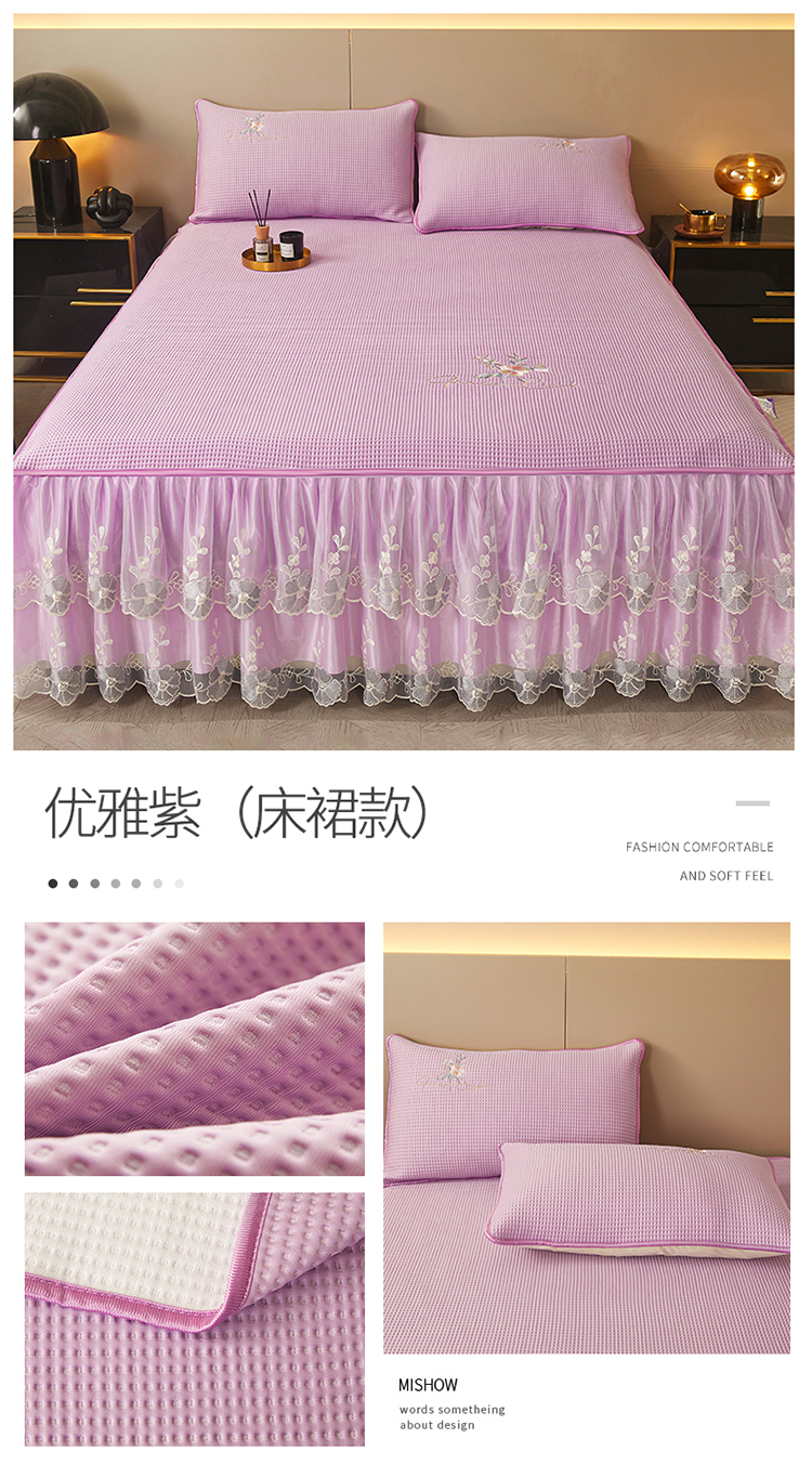 商品名称:恒爱 2023 刺绣华夫格床裙三件套 优雅紫(床裙款)