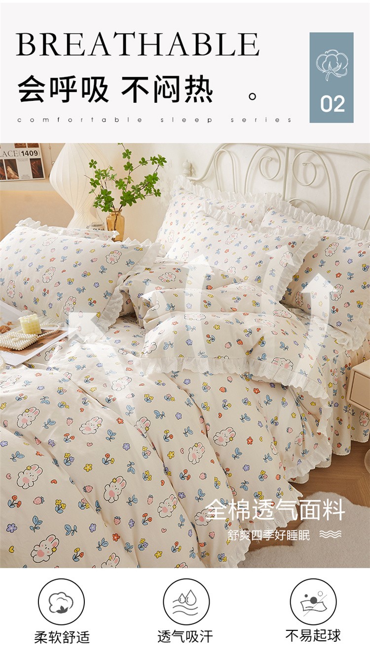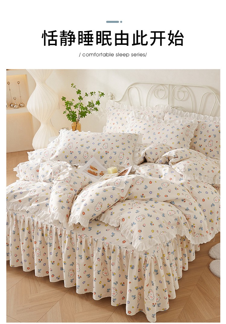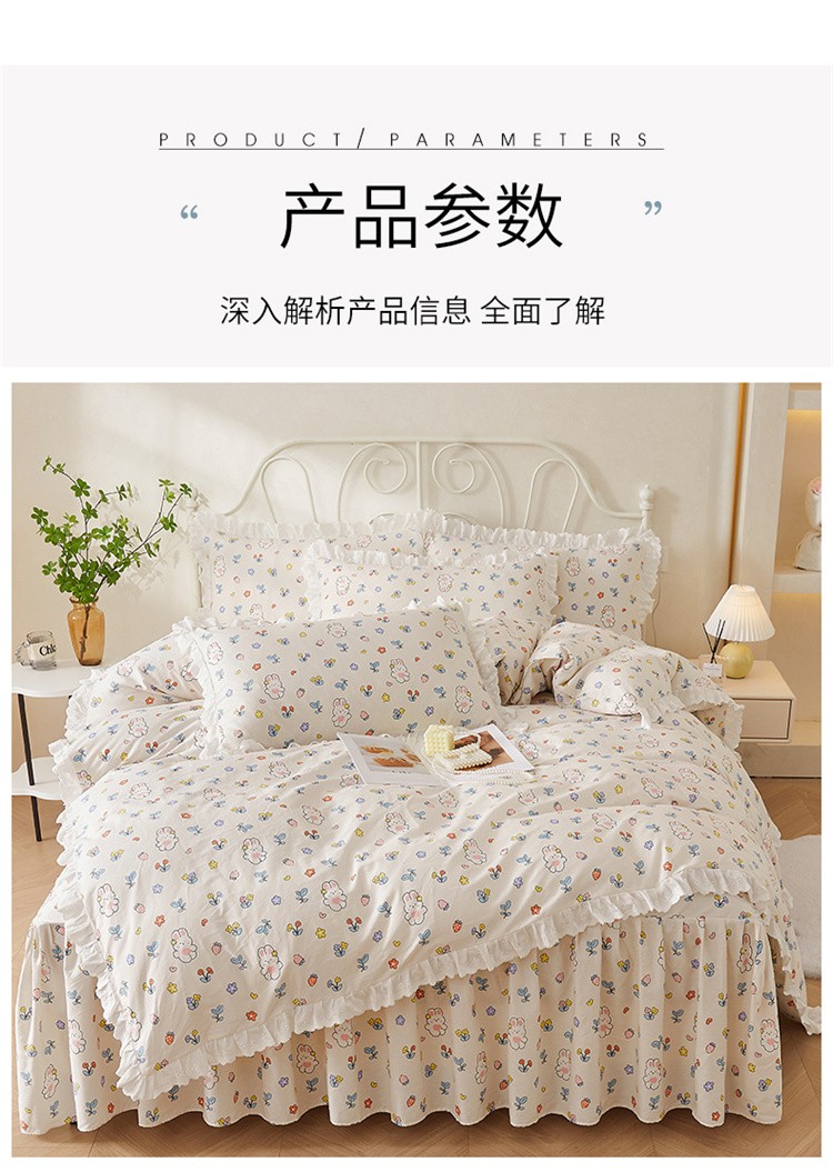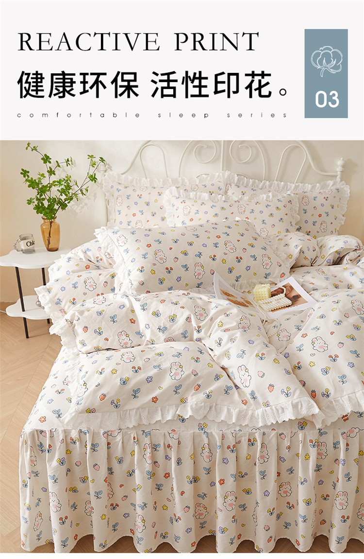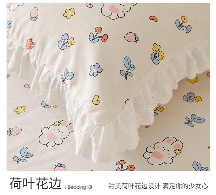 当前位置: 91家纺网 > 商品网购 > 床品套件 > 四件套 > 全棉普通四件套 > 十个点2024新款初遇系列 全棉床裙小清新四件套 元气兔兔