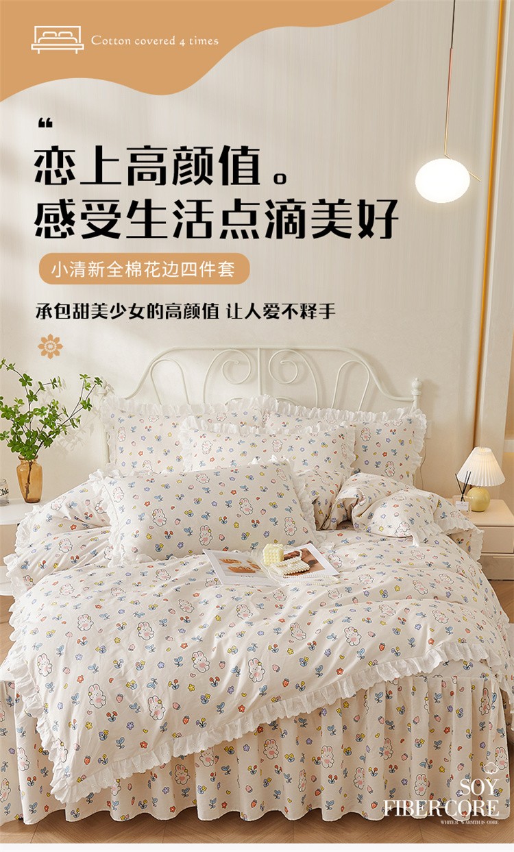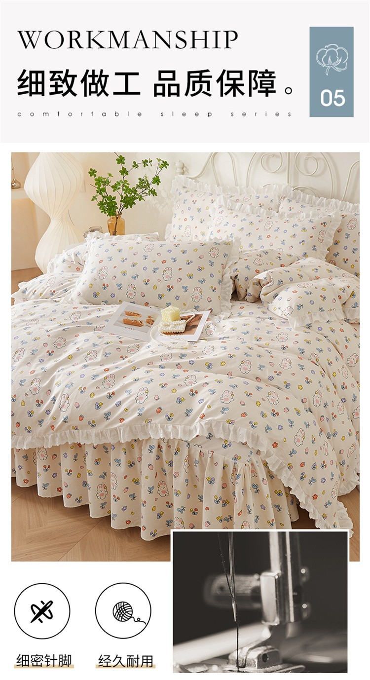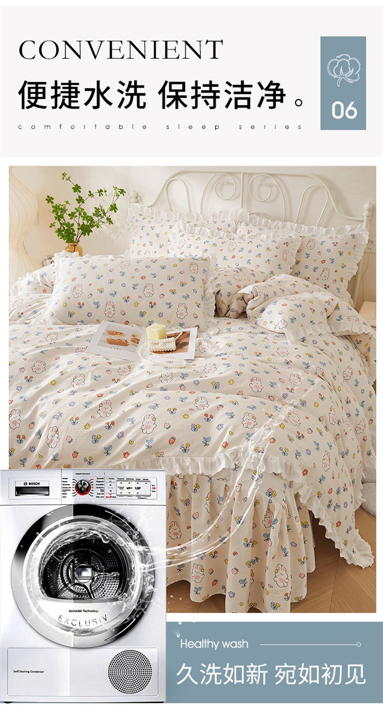 当前位置: 91家纺网 > 商品网购 > 床品套件 > 四件套 > 全棉普通四件套 > 十个点2024新款初遇系列 全棉床裙小清新四件套 元气兔兔