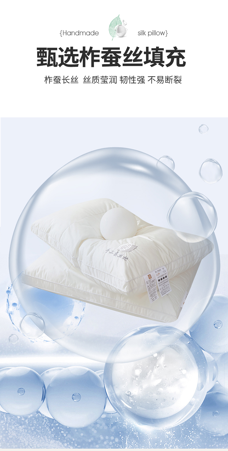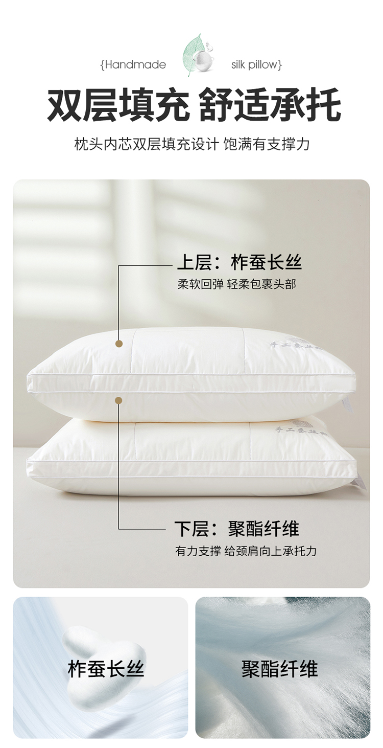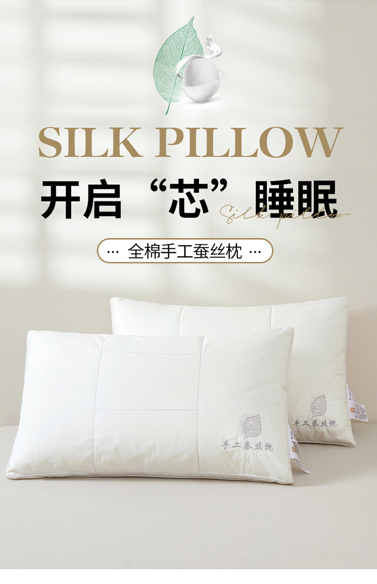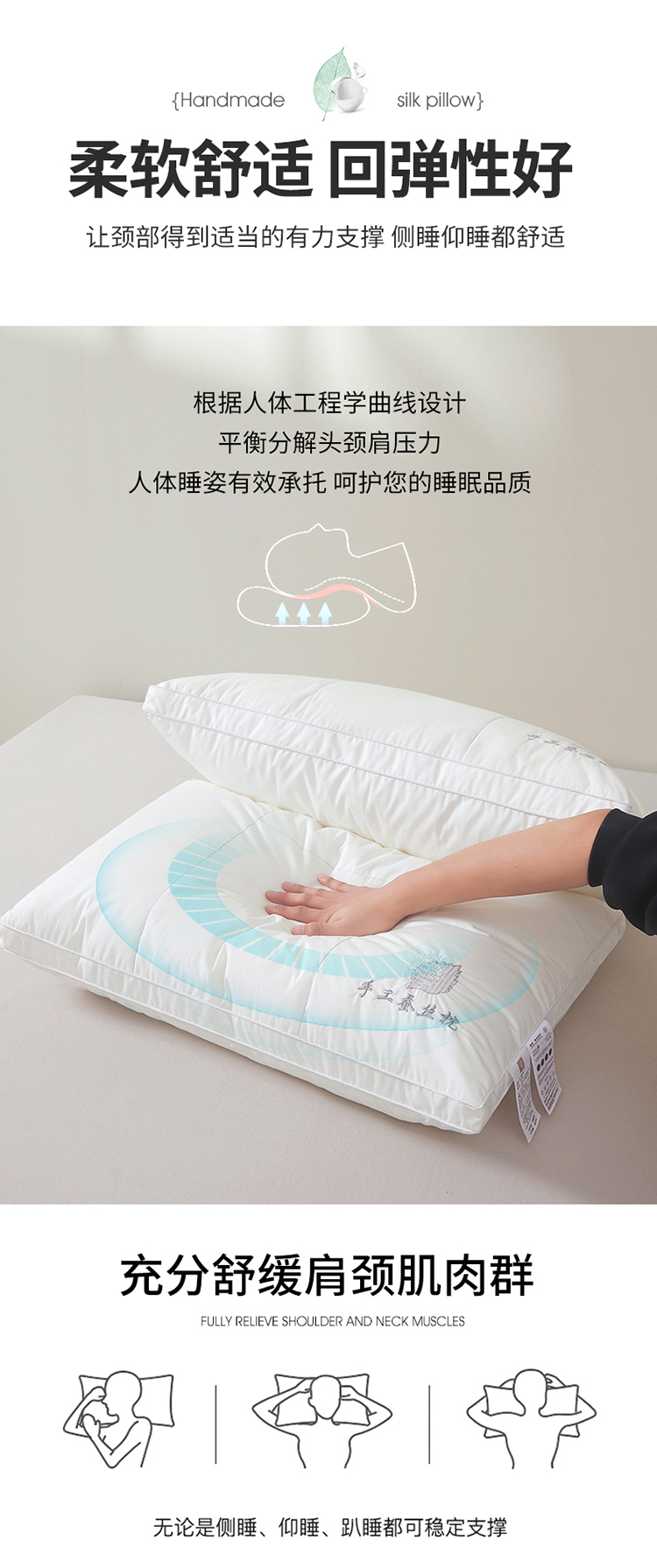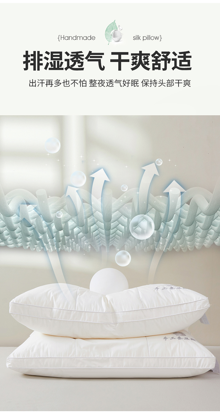 A类蚕丝枕万针刺绣全棉酒店立体枕头枕芯母婴级
