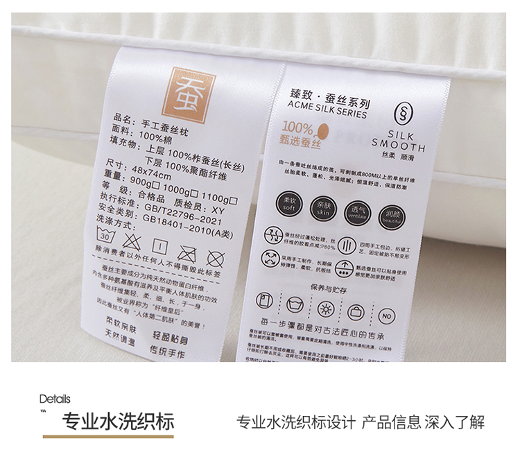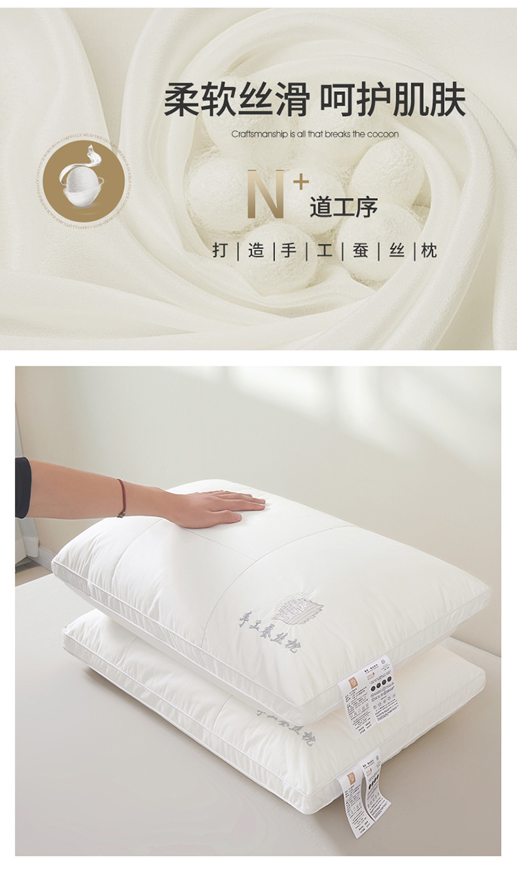 商品名称:A类蚕丝枕万针刺绣全棉酒店立体枕头枕芯母婴级