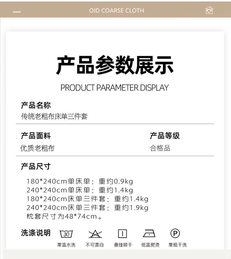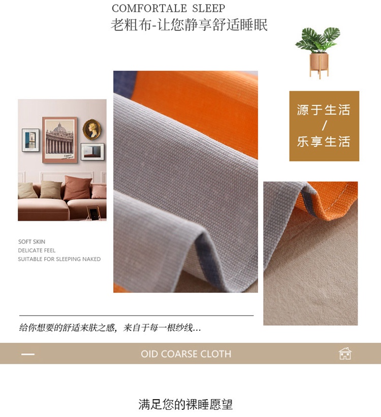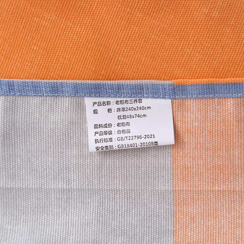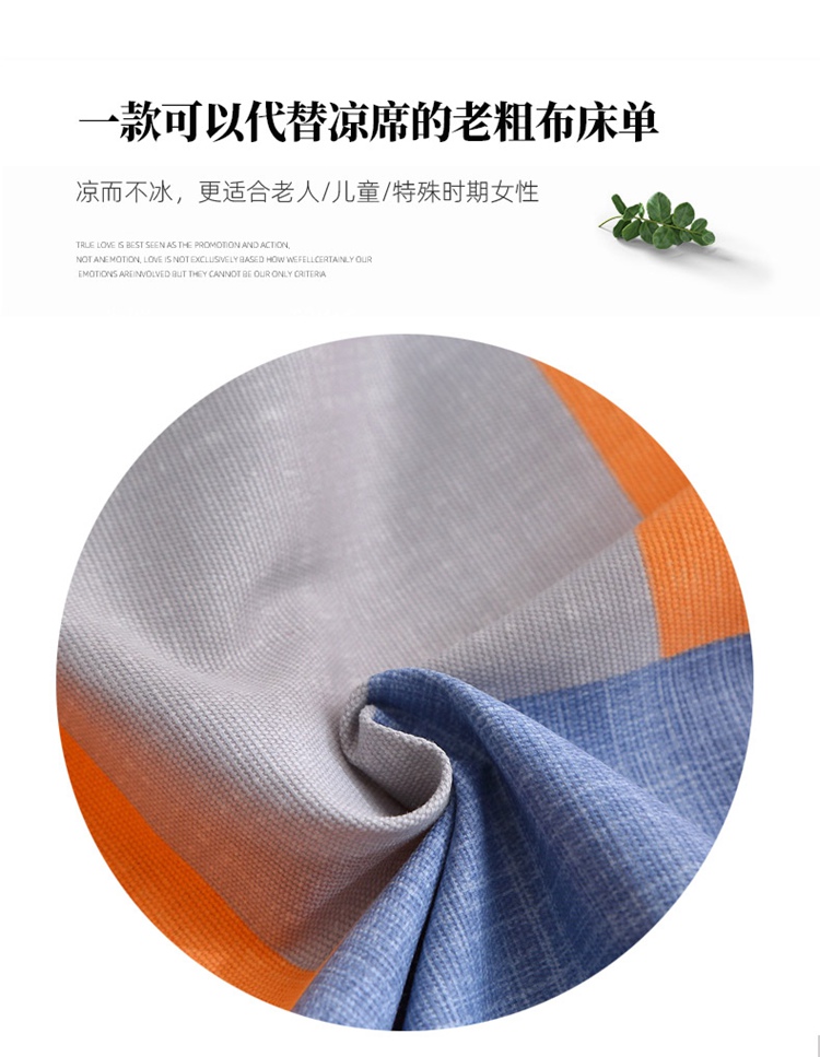 商品名称:晶缦2023新款全棉老粗布凉席三件套 蓝橙格