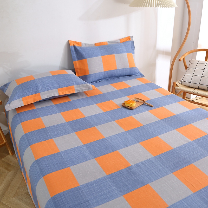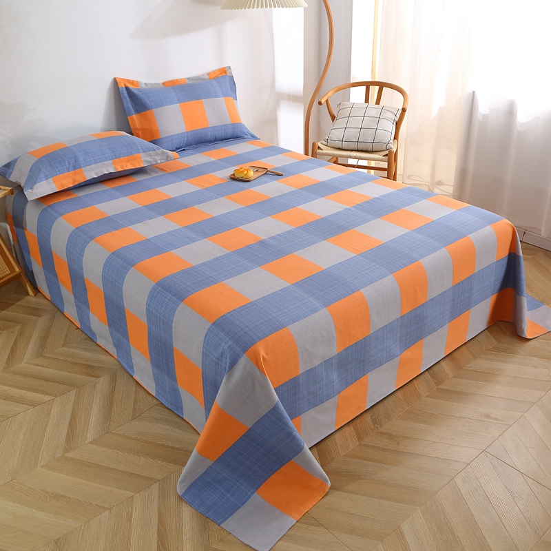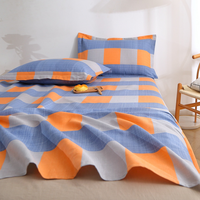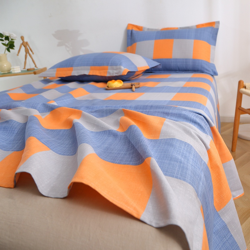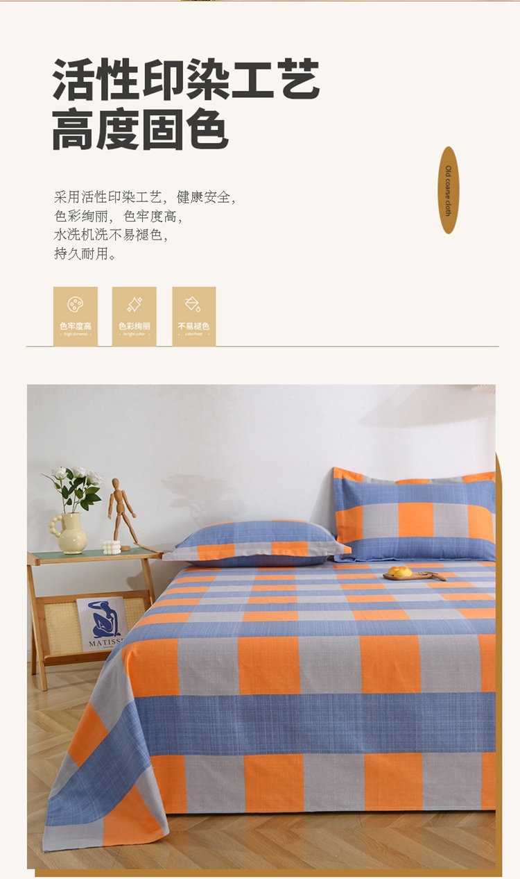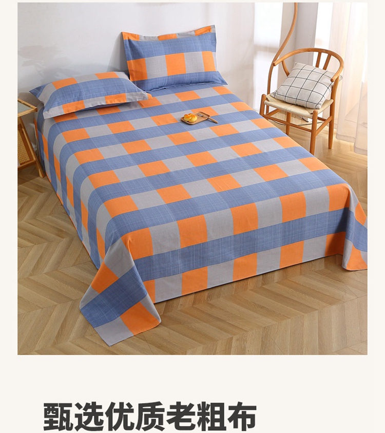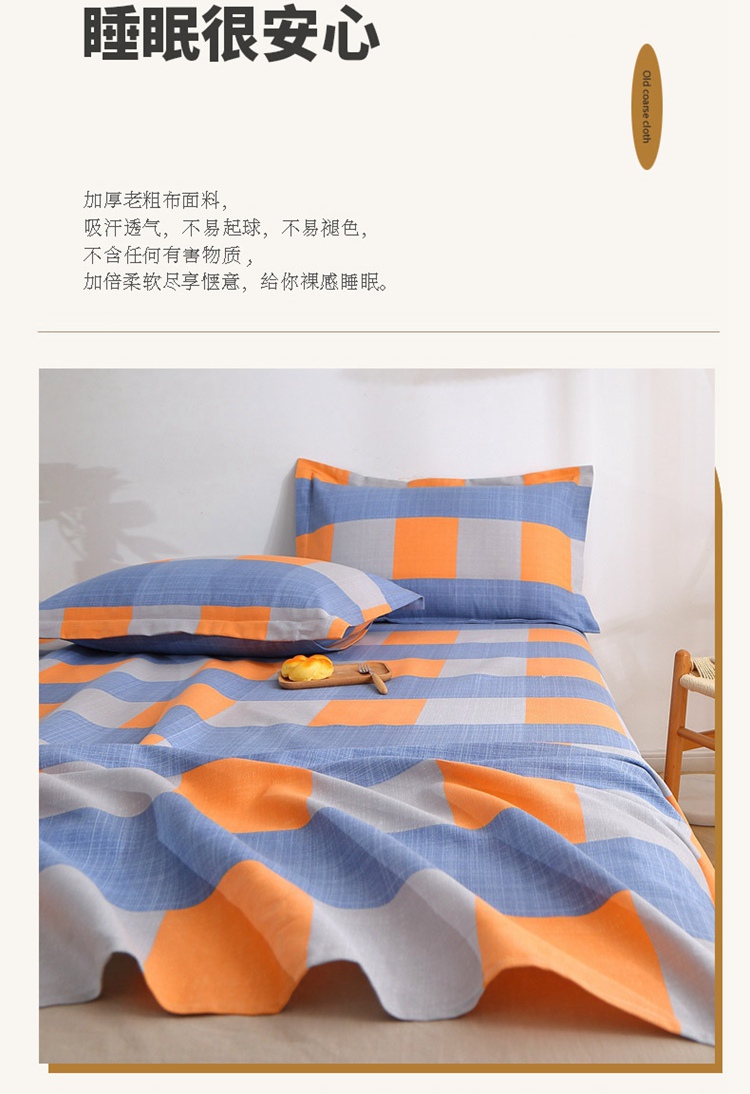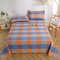晶缦2023新款全棉老粗布凉席三件套 蓝橙格