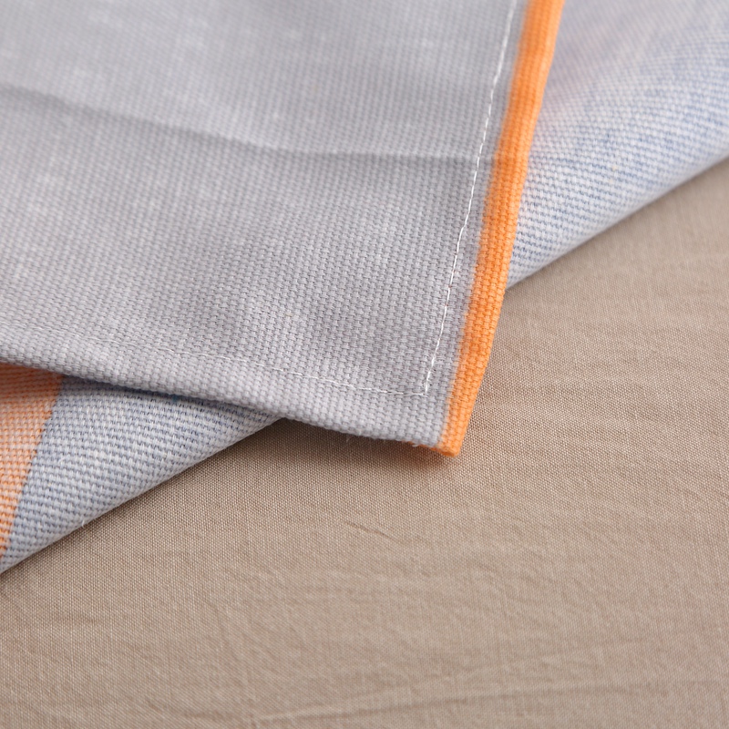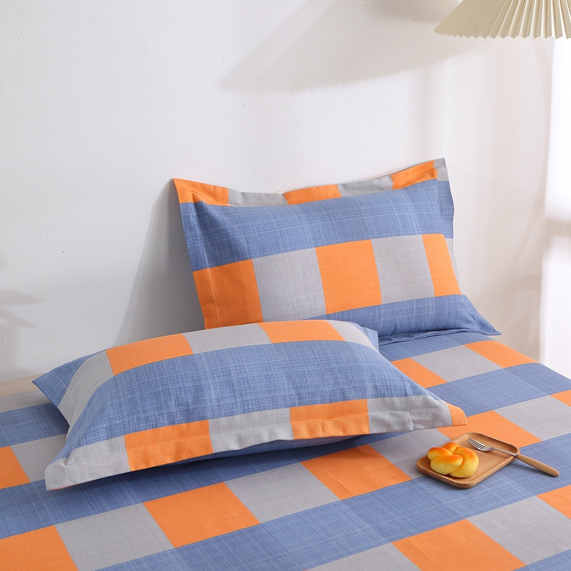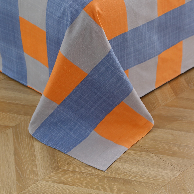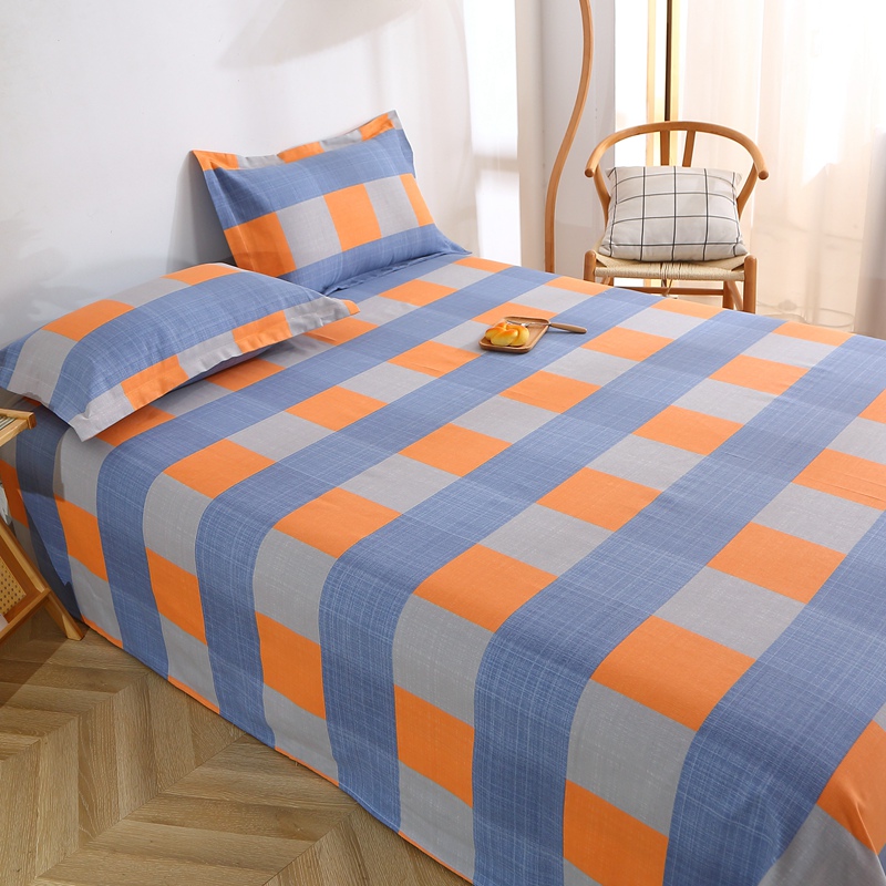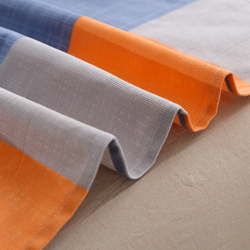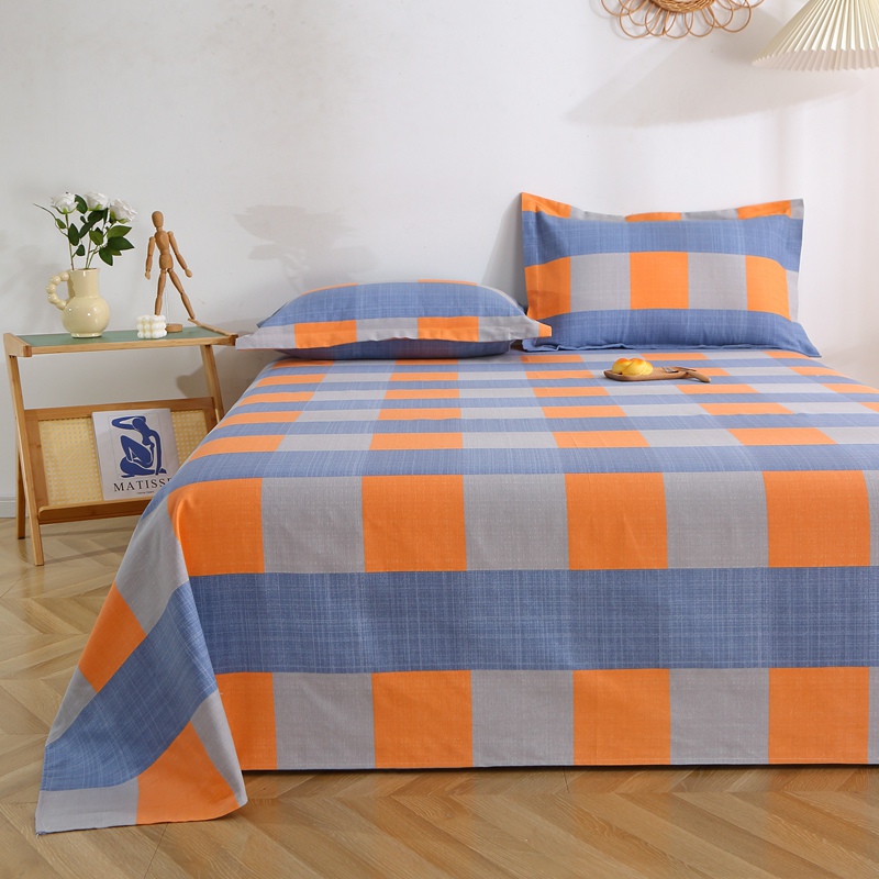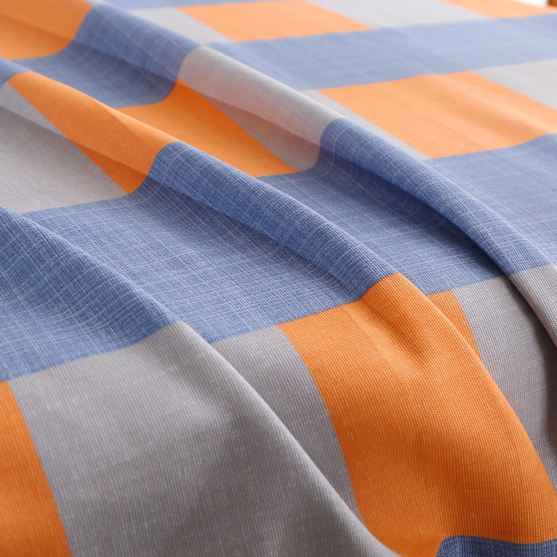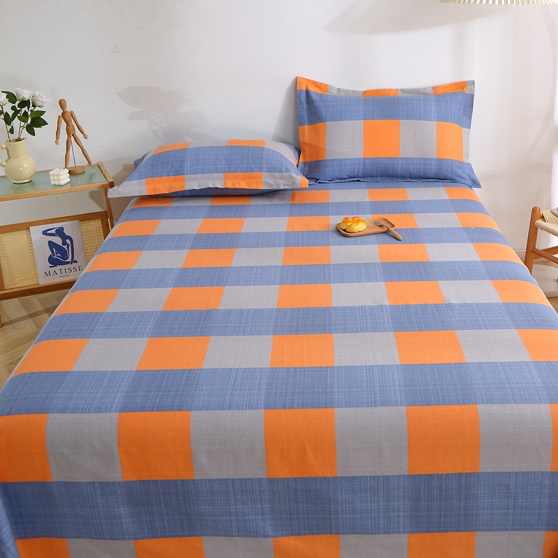 晶缦2023新款全棉老粗布凉席三件套 蓝橙格
