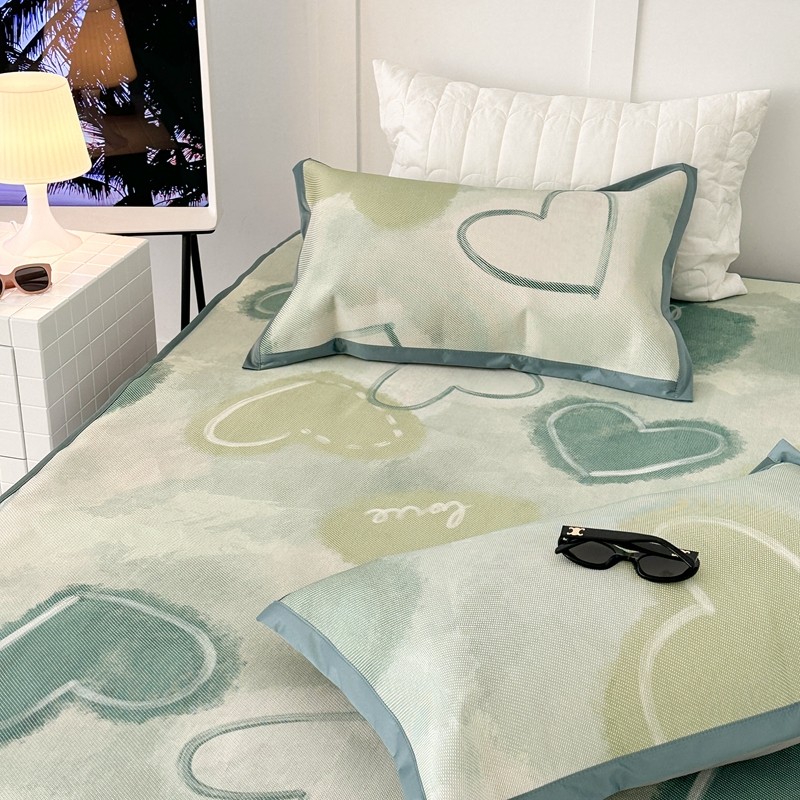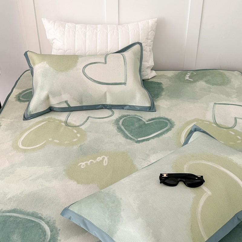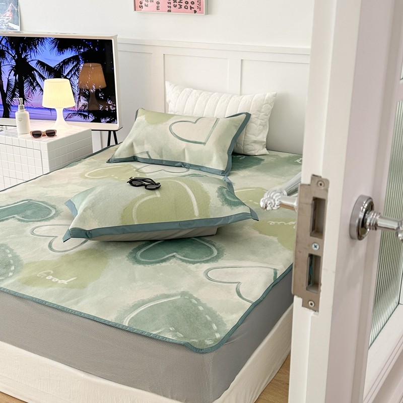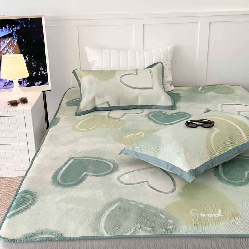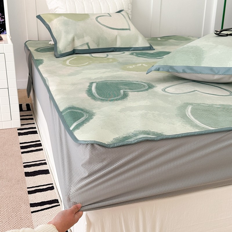 商品名称:昔可 2023新款高端数码冰藤席床笠款凉席 绿色水彩爱心
