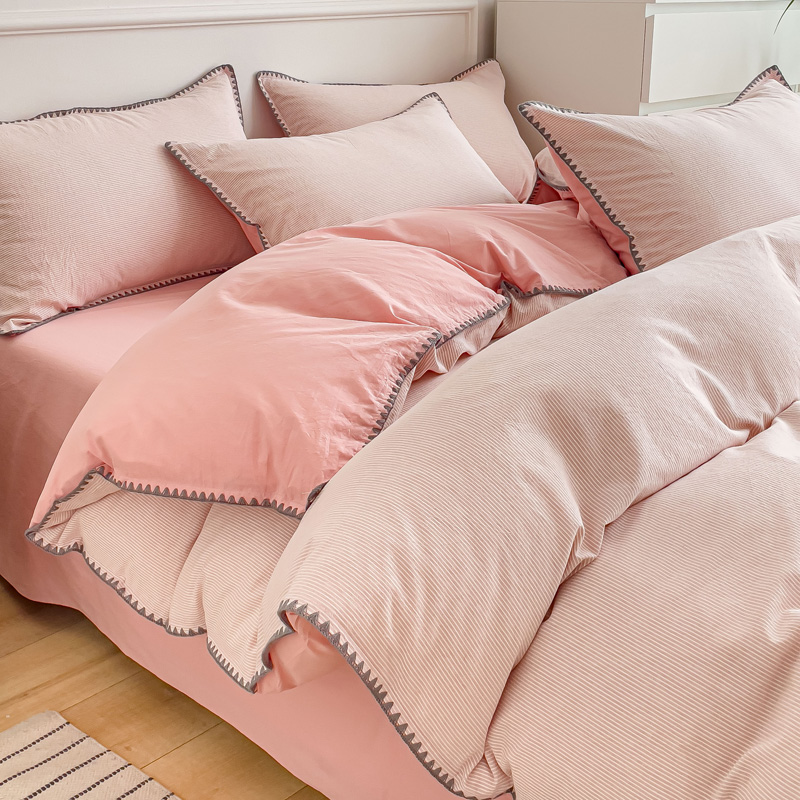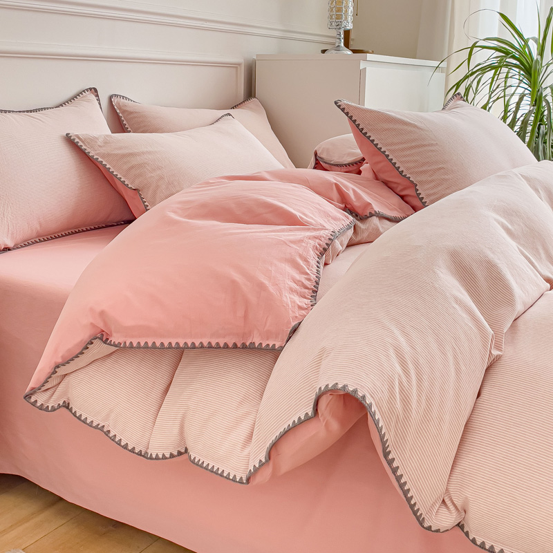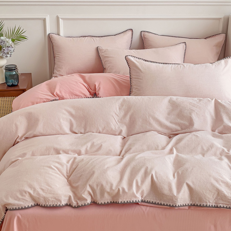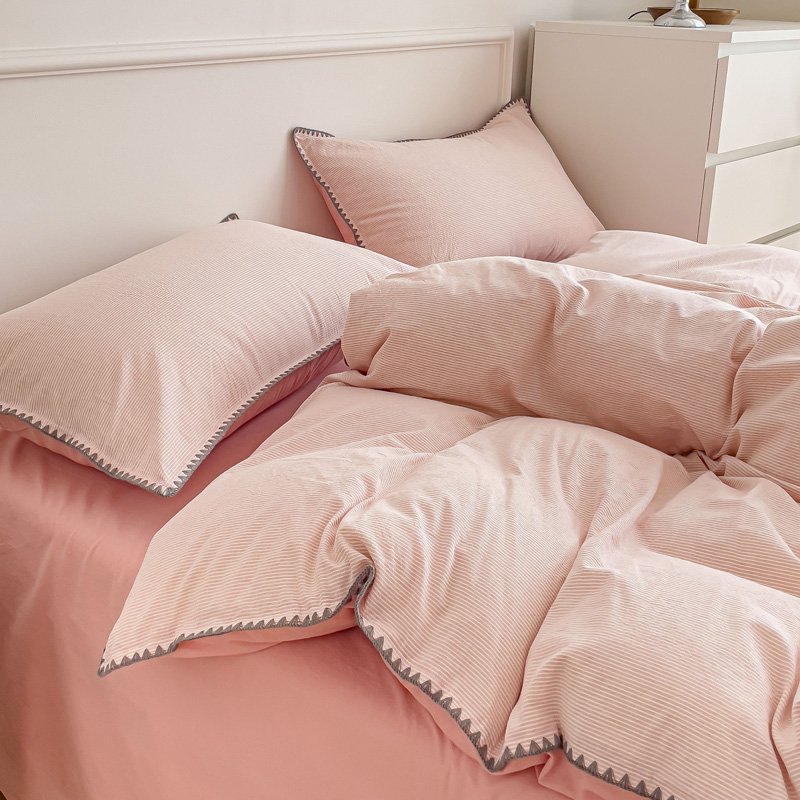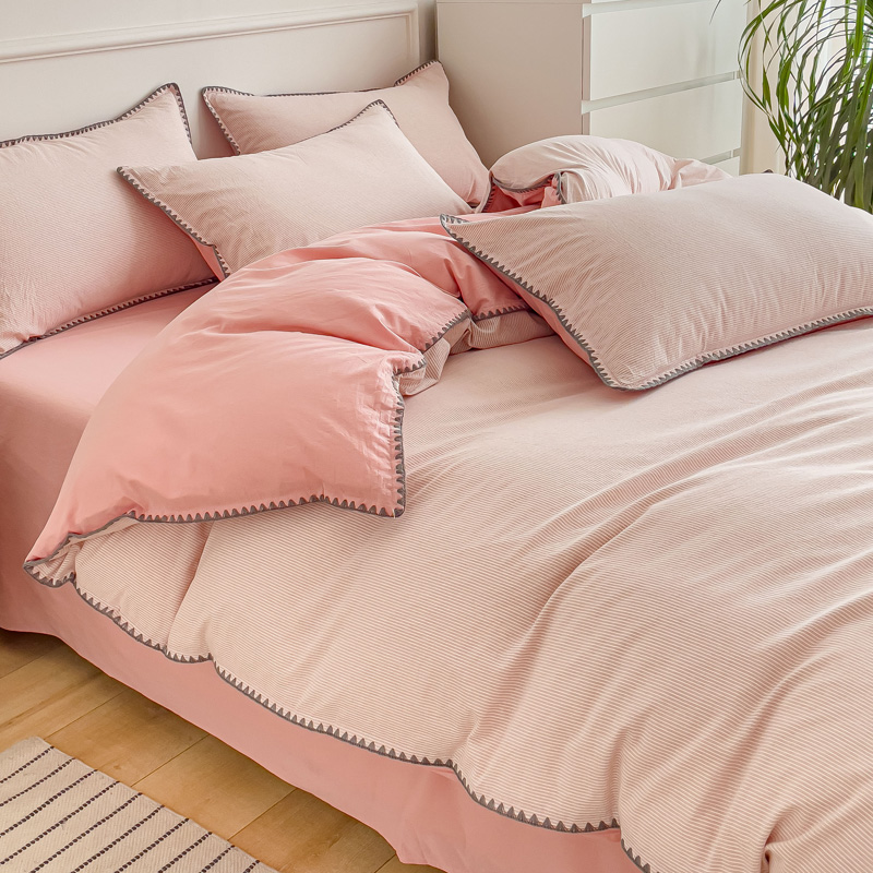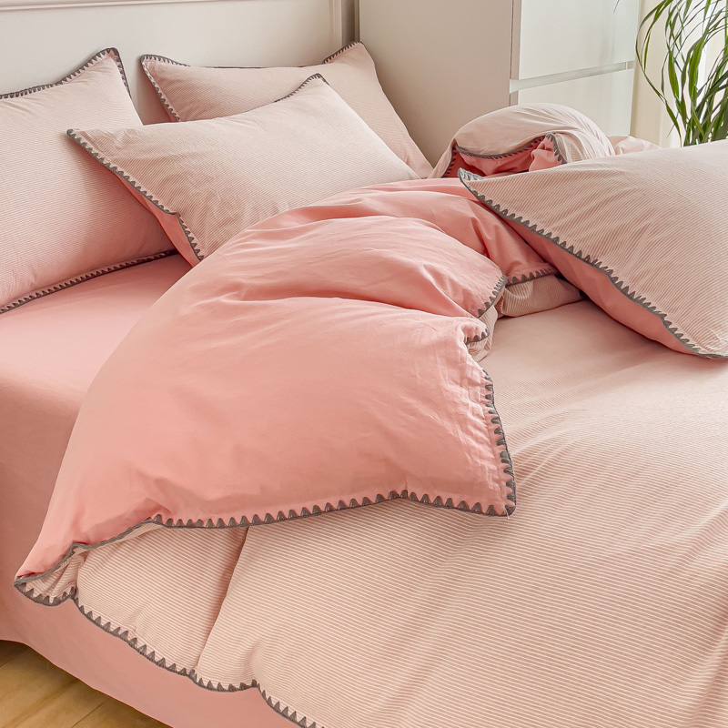 当前位置: 91家纺网 > 商品网购 > 床品套件 > 四件套 > 水洗棉四件套 > 金丝鸟 2023新款贝壳边A类色织全棉水洗棉简约条纹四件套 贝壳边款简约条纹 粉