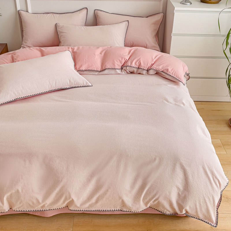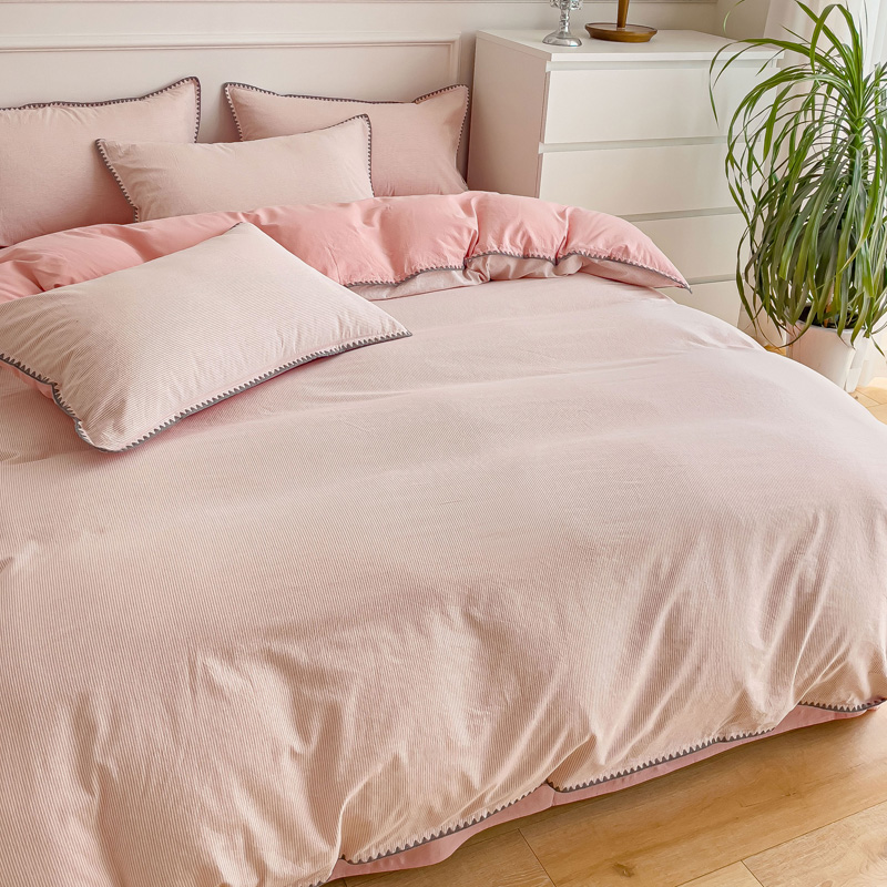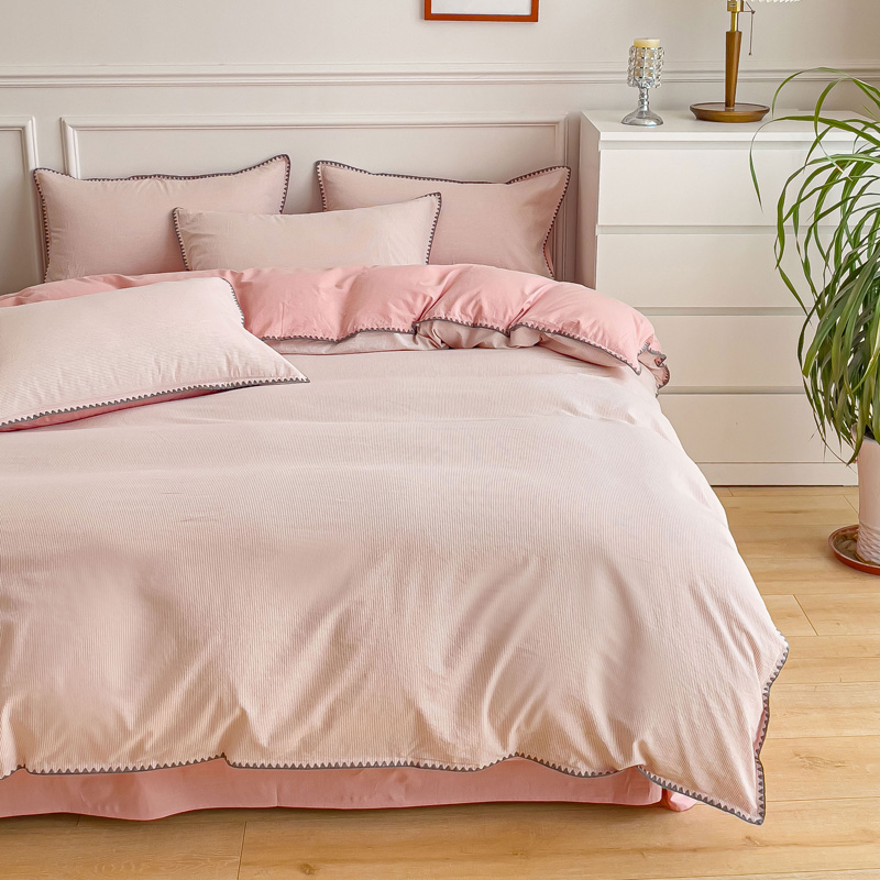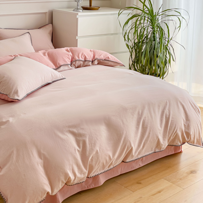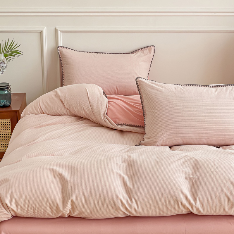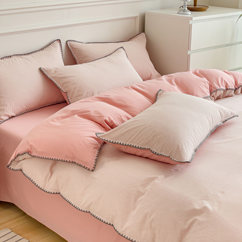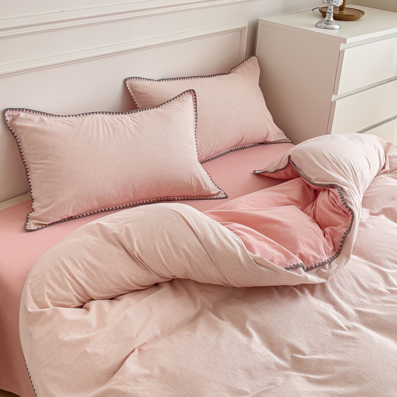 当前位置: 91家纺网 > 商品网购 > 床品套件 > 四件套 > 水洗棉四件套 > 金丝鸟 2023新款贝壳边A类色织全棉水洗棉简约条纹四件套 贝壳边款简约条纹 粉