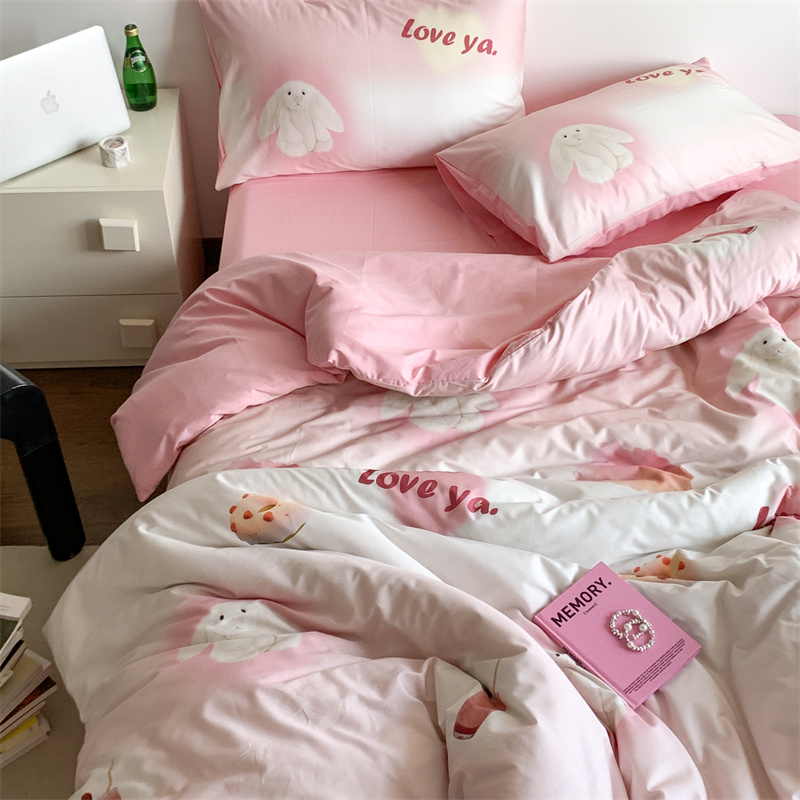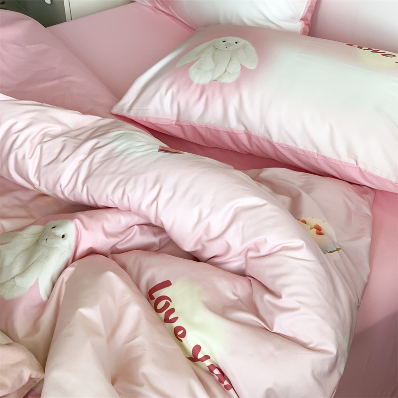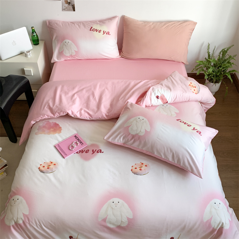 桃喜 2024新款40支全棉13376ins风数码印花四件套 玩偶兔