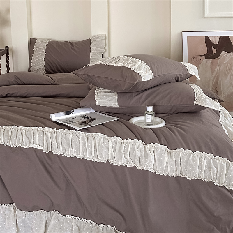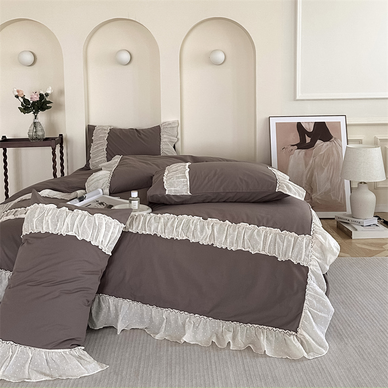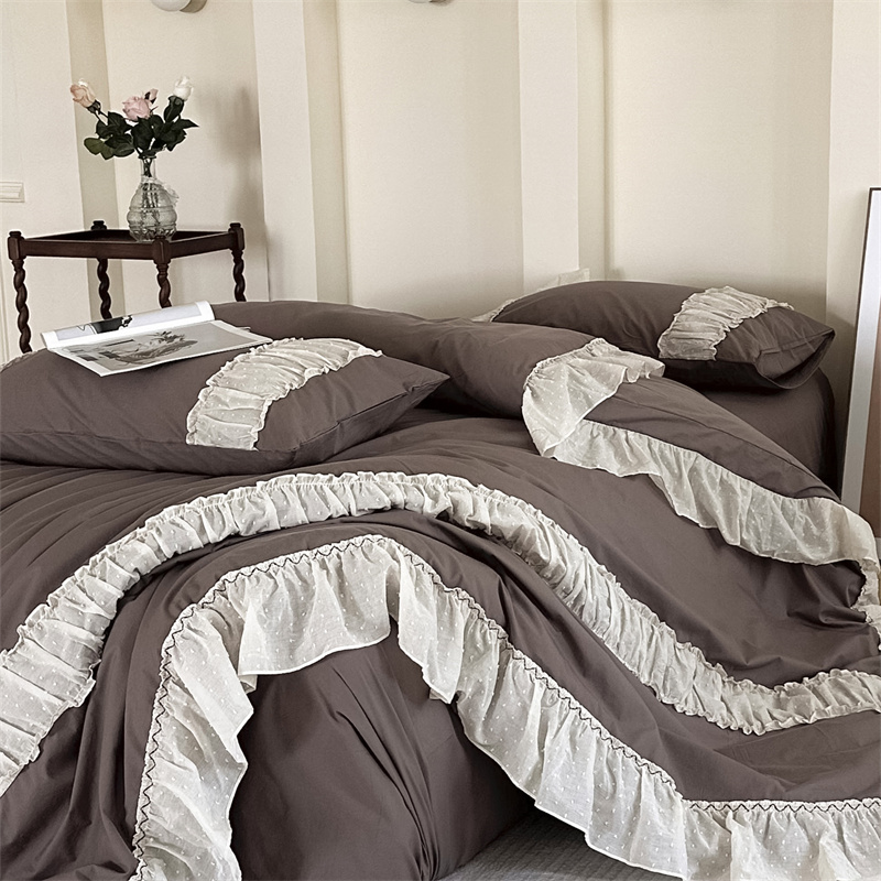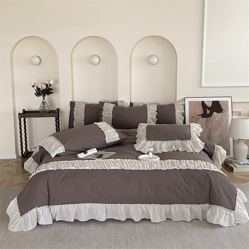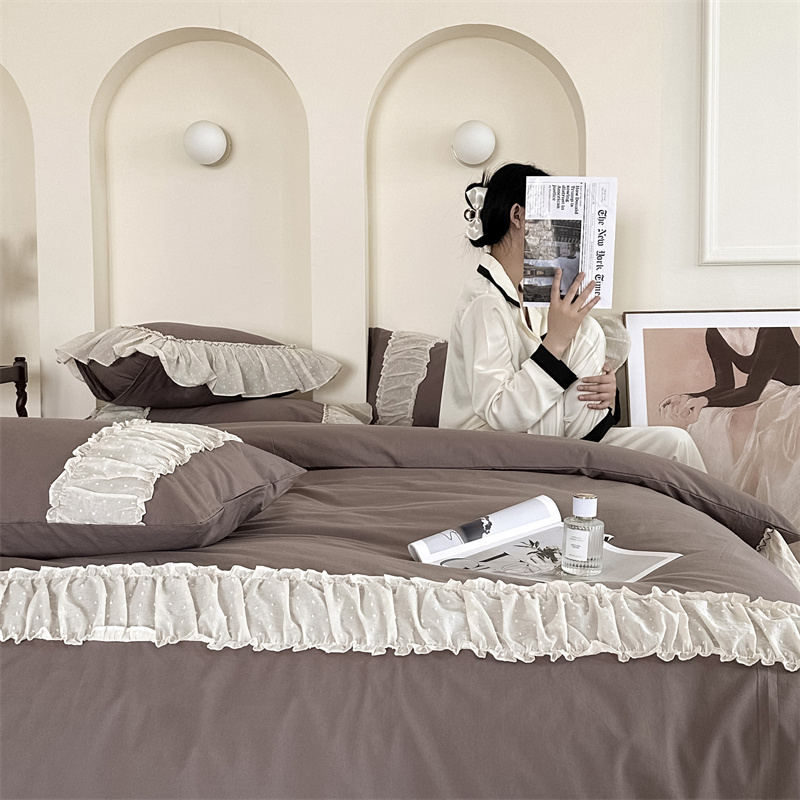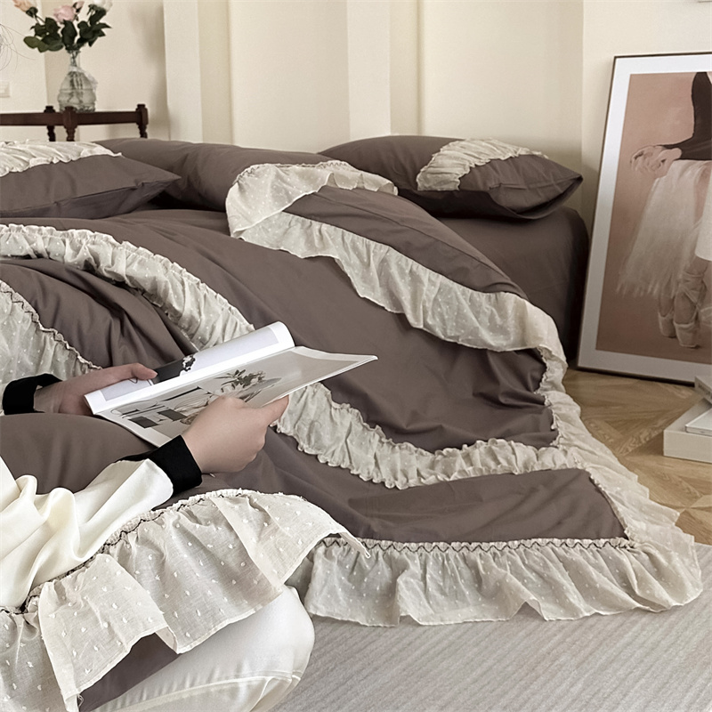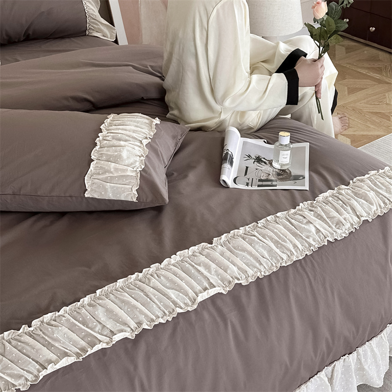 朗莎家纺 2023新款全棉水洗棉法式四件套 露华浓-咖
