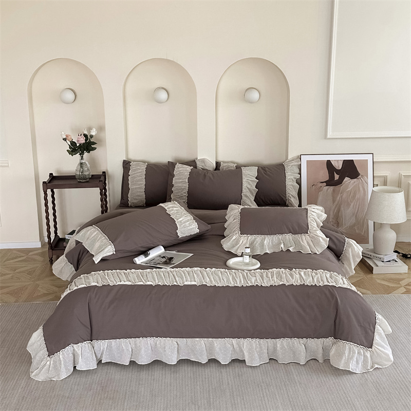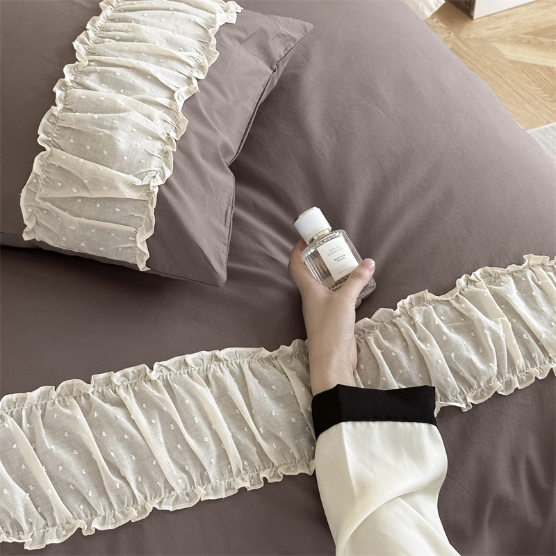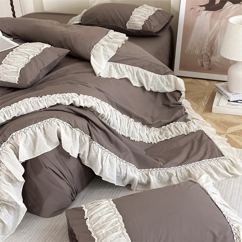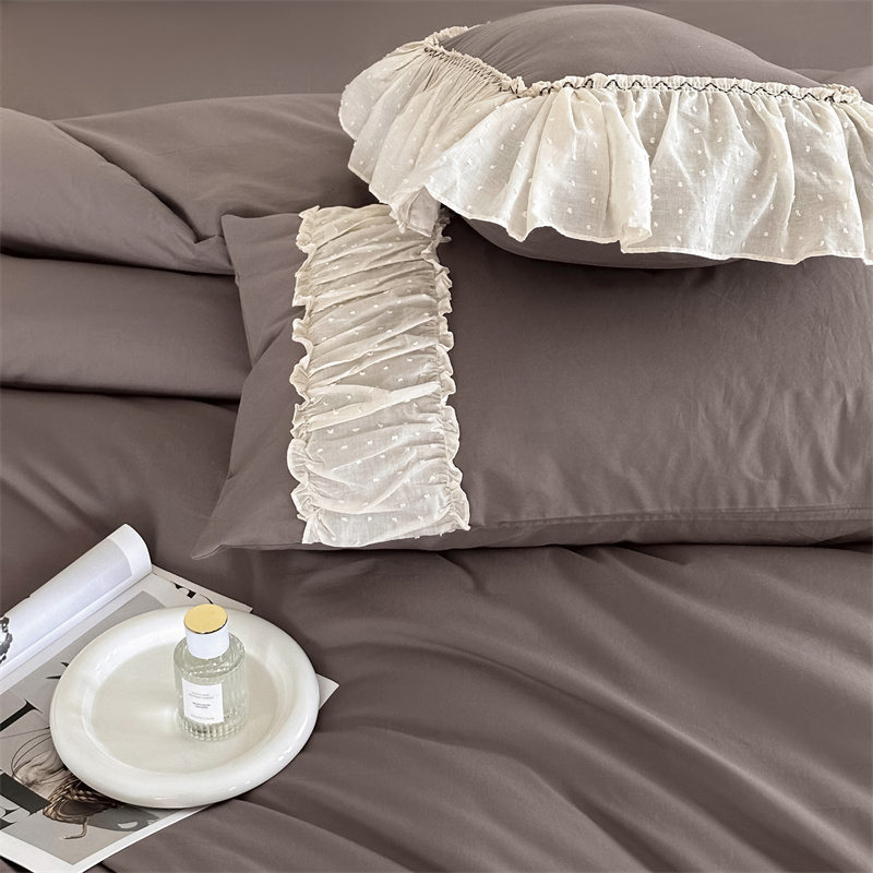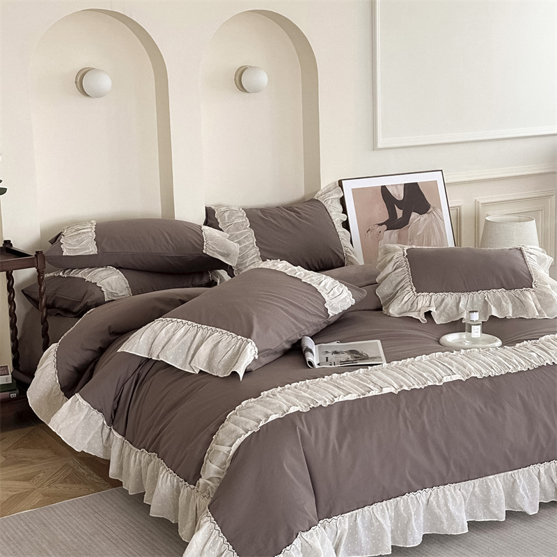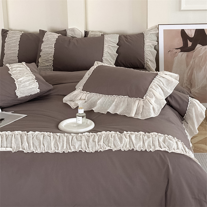 朗莎家纺 2023新款全棉水洗棉法式四件套 露华浓-咖