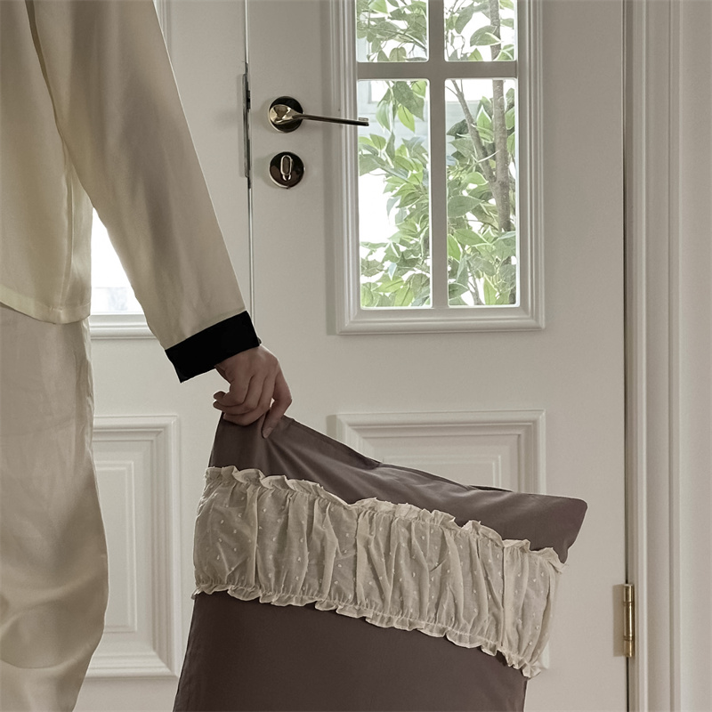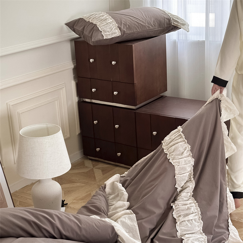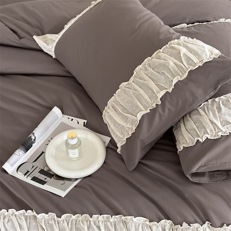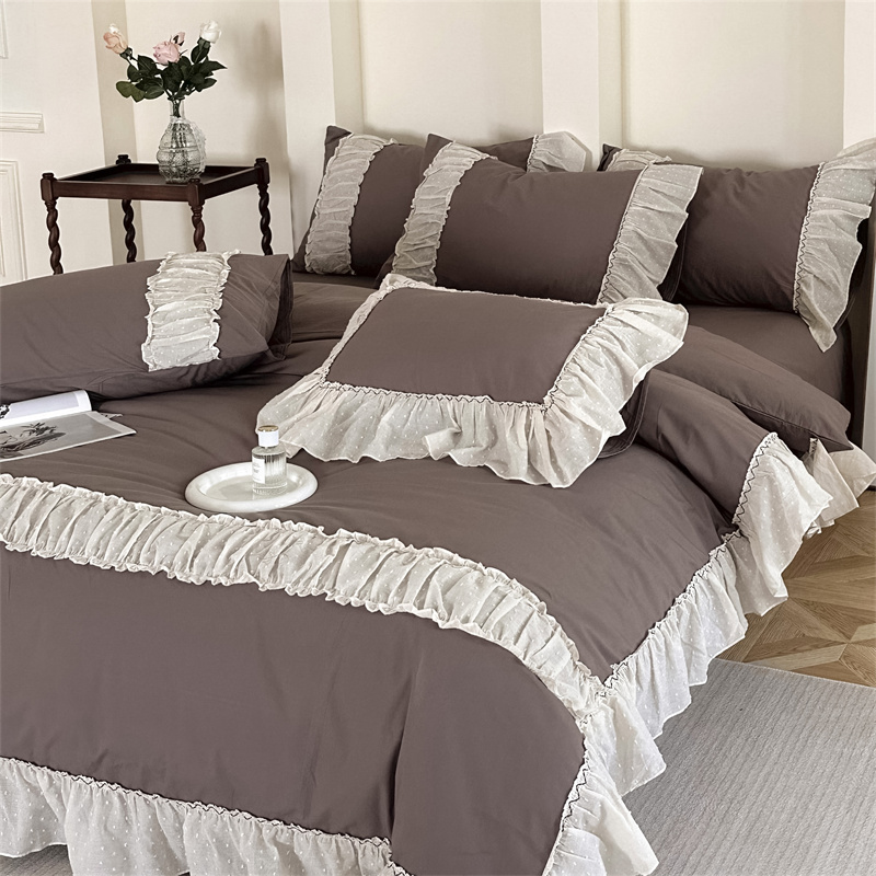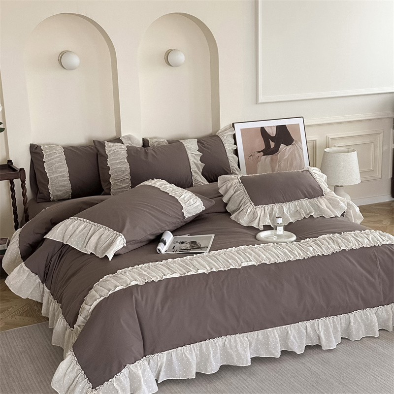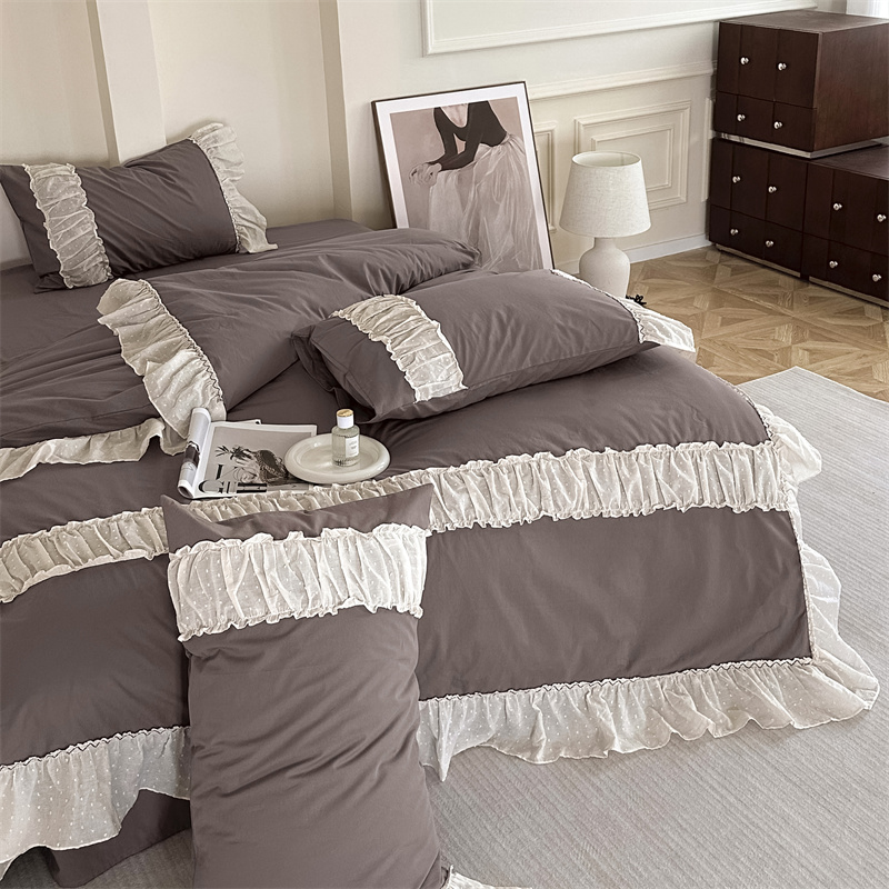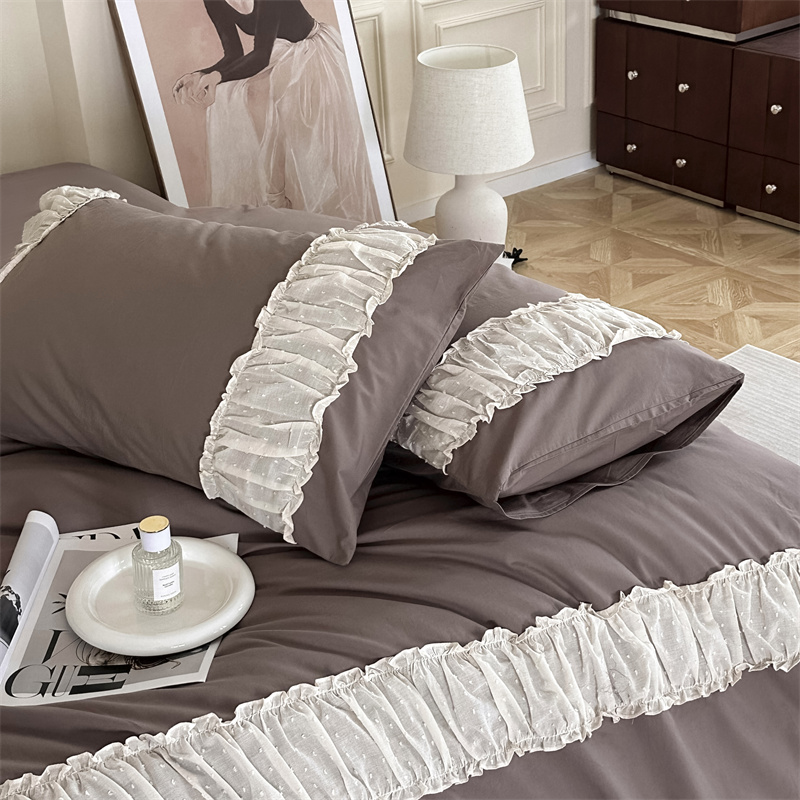 朗莎家纺 2023新款全棉水洗棉法式四件套 露华浓-咖