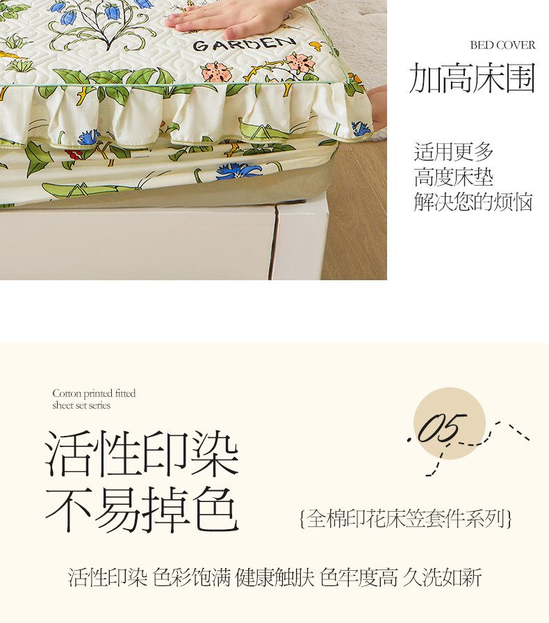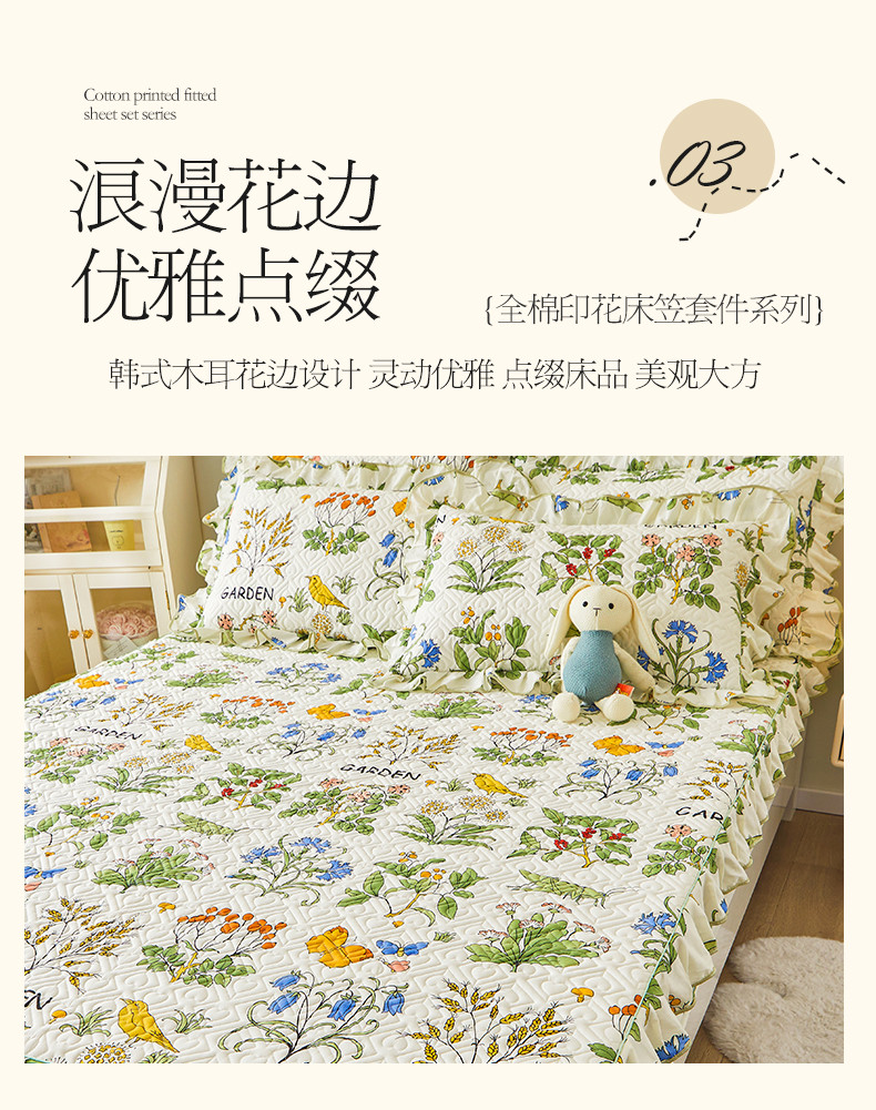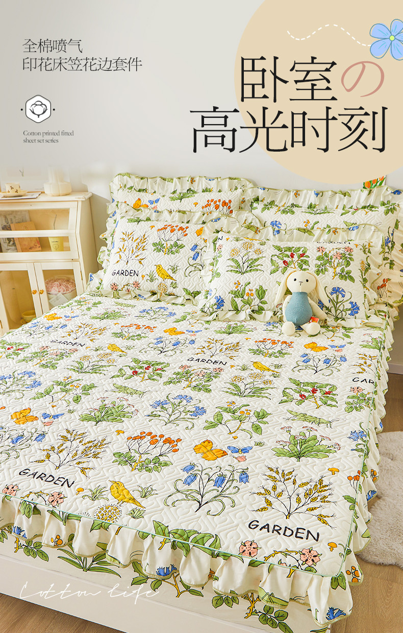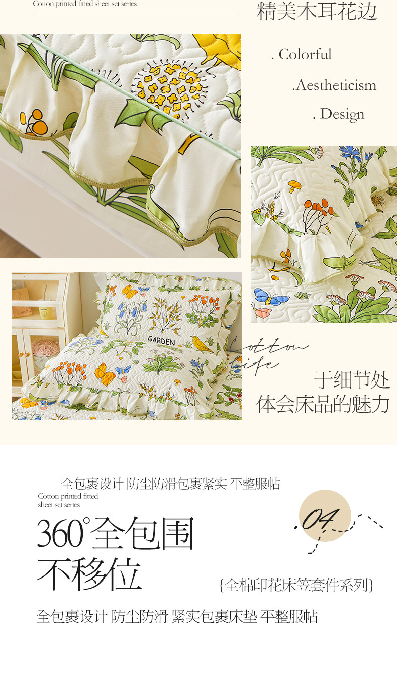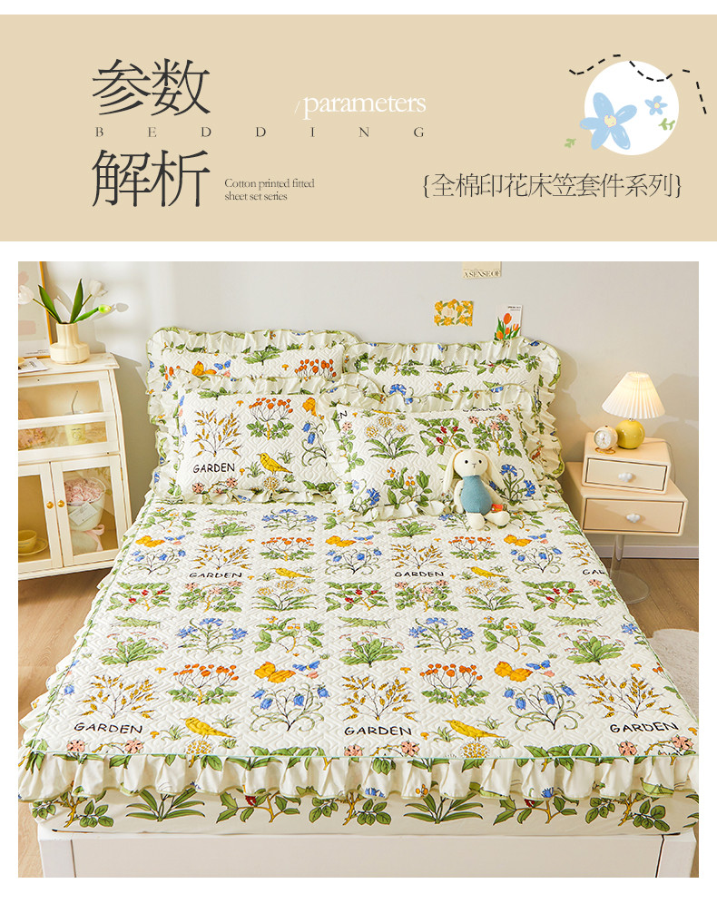 宜凡 2023新款全棉印花床笠三件套 百草园