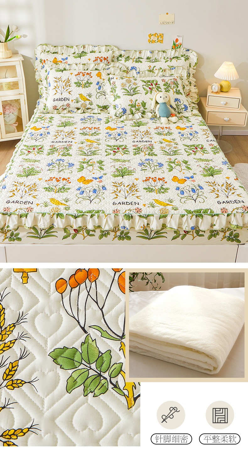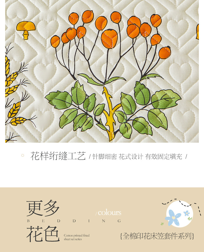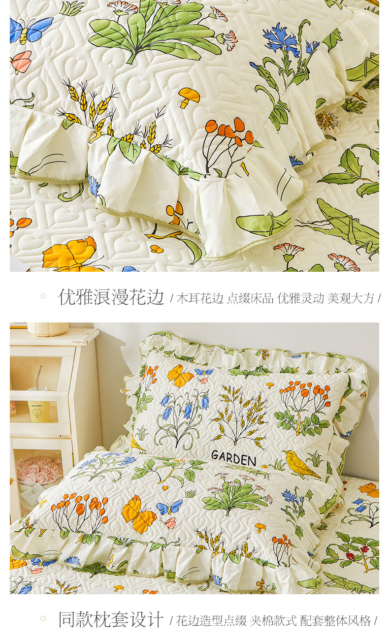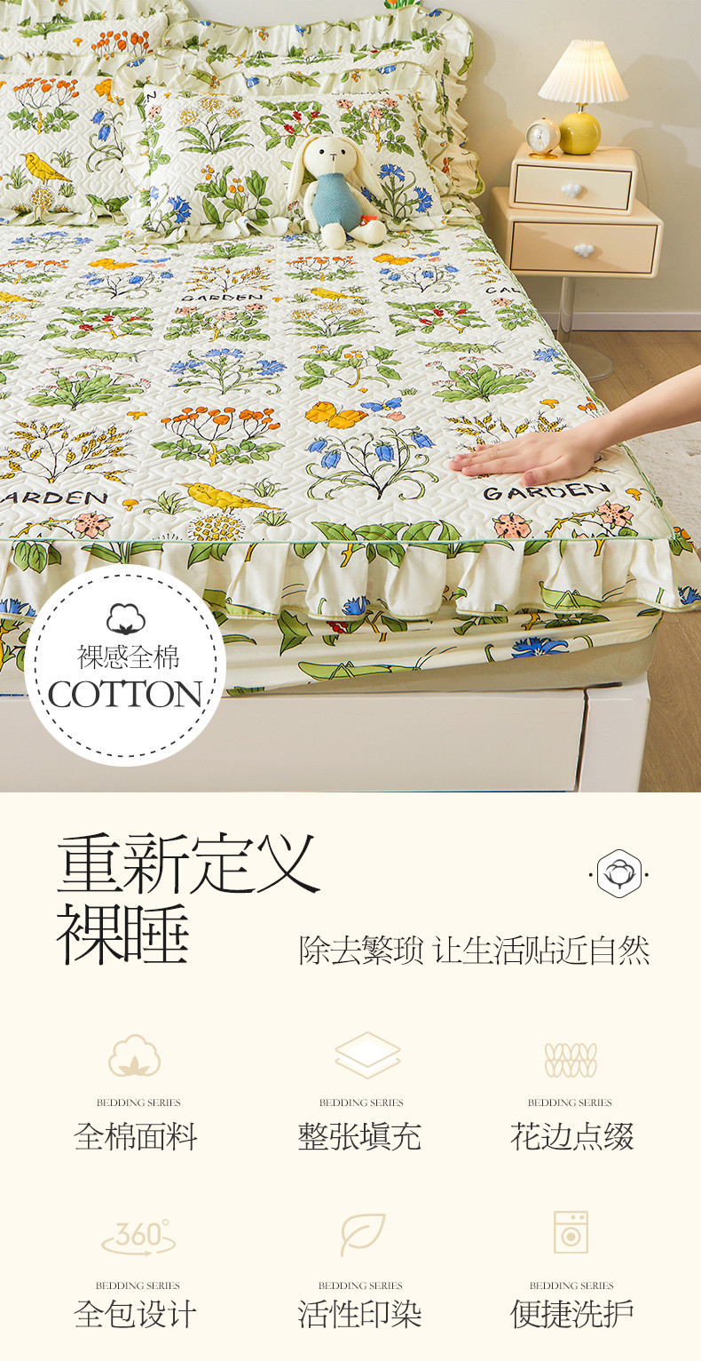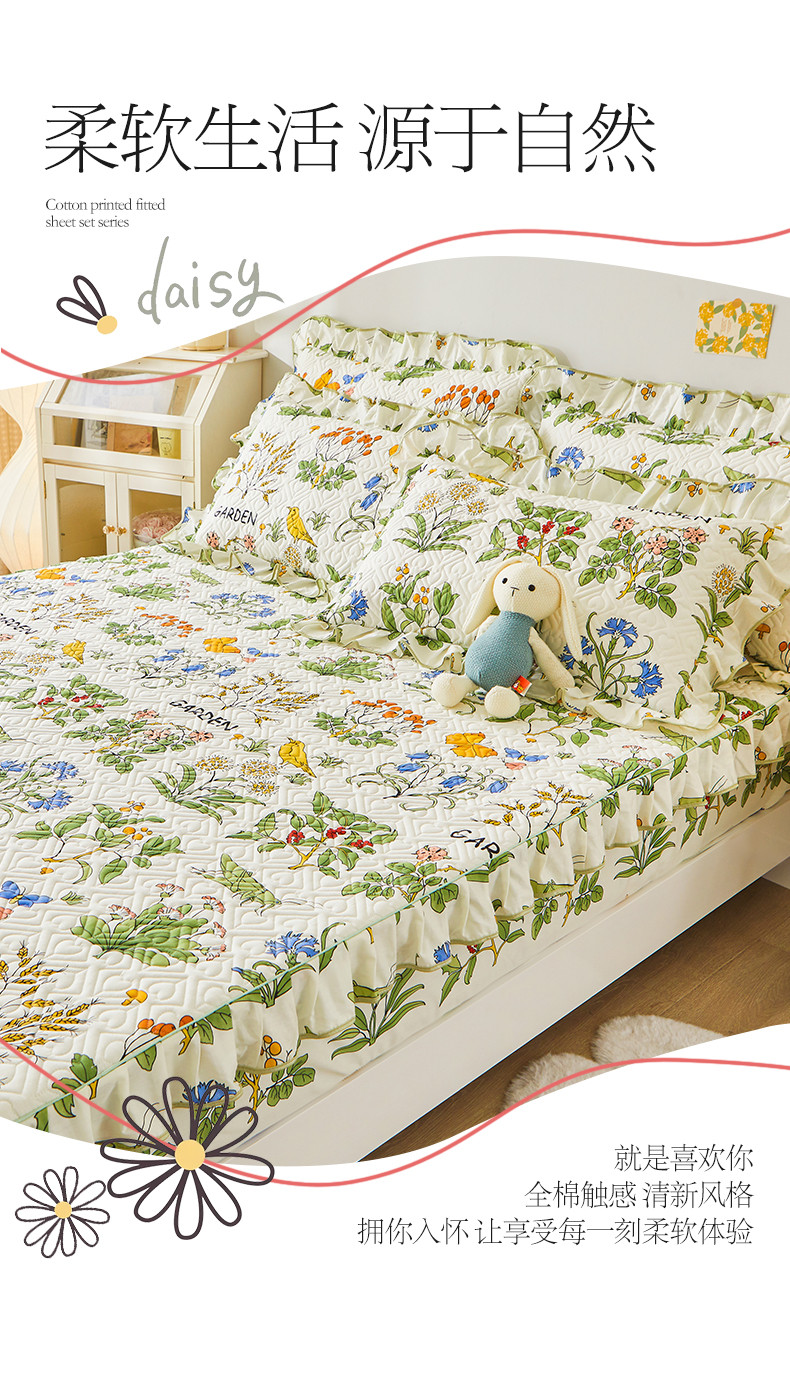 宜凡 2023新款全棉印花床笠三件套 百草园