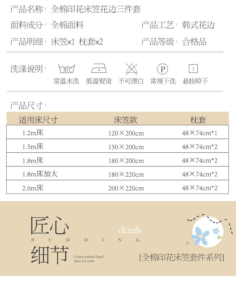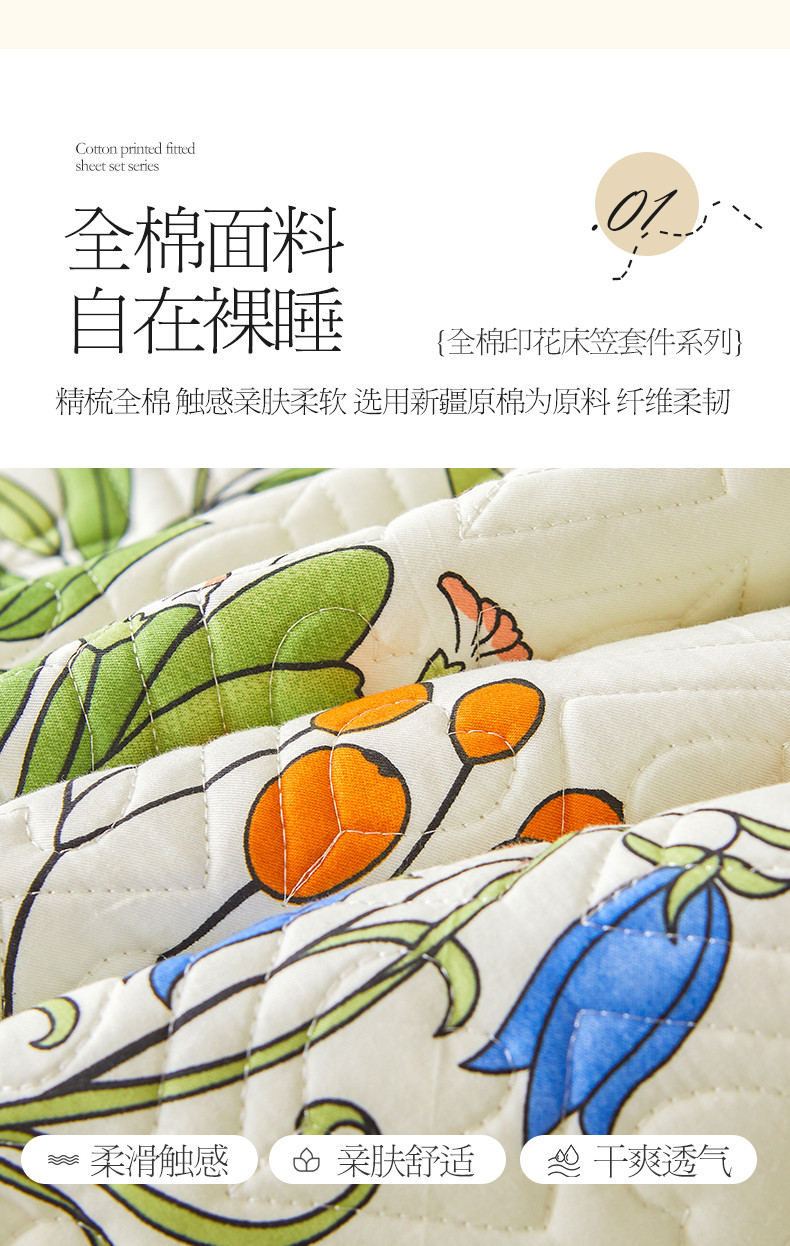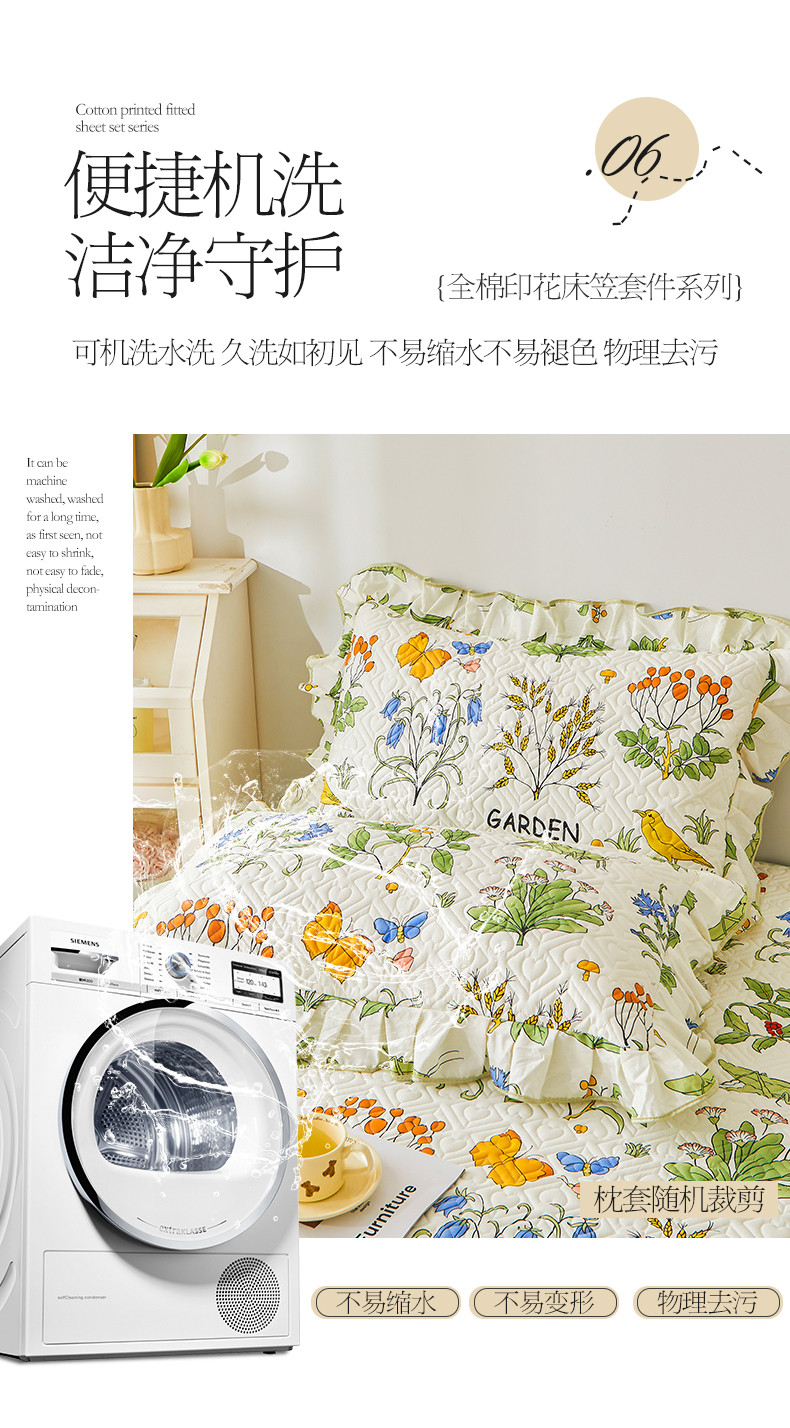 商品名称:宜凡 2023新款全棉印花床笠三件套 百草园